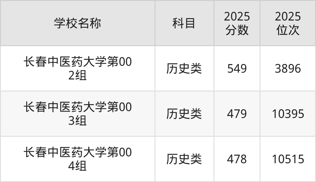 下文为2025年吉林省中医药大学在吉林历史类录取分数线和位次排名表,供大家参考: