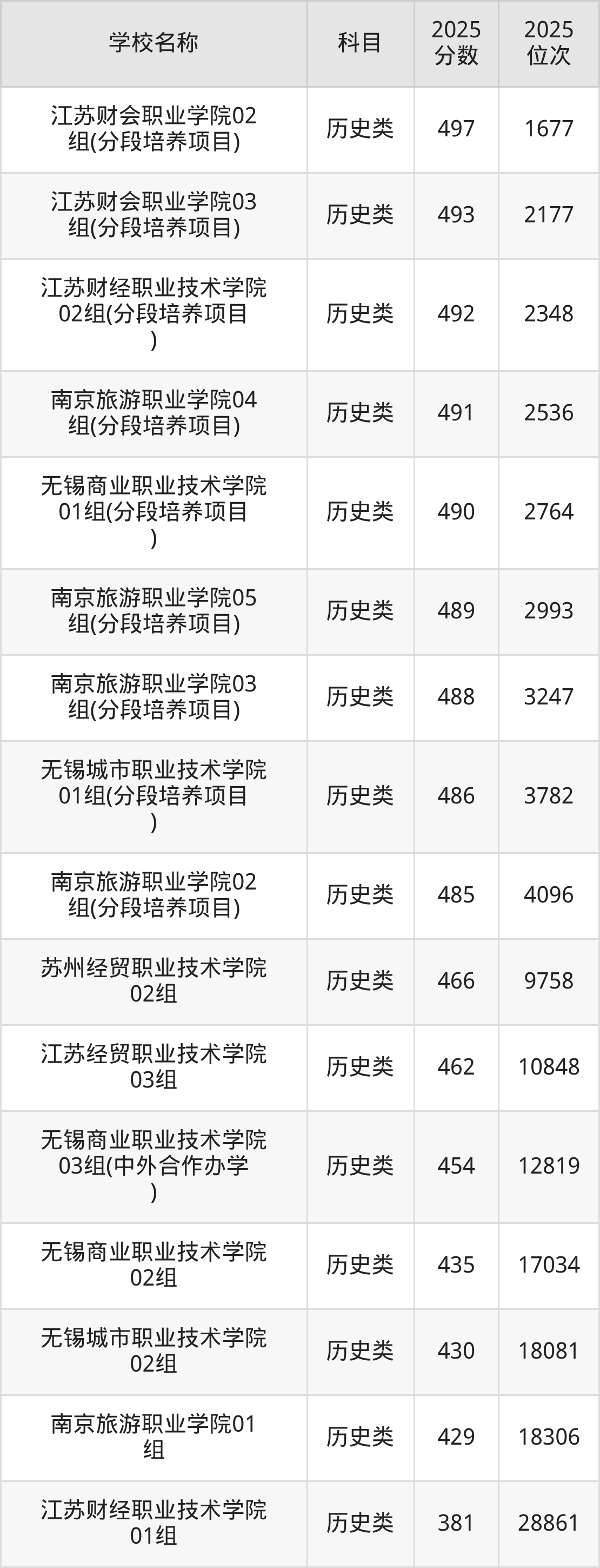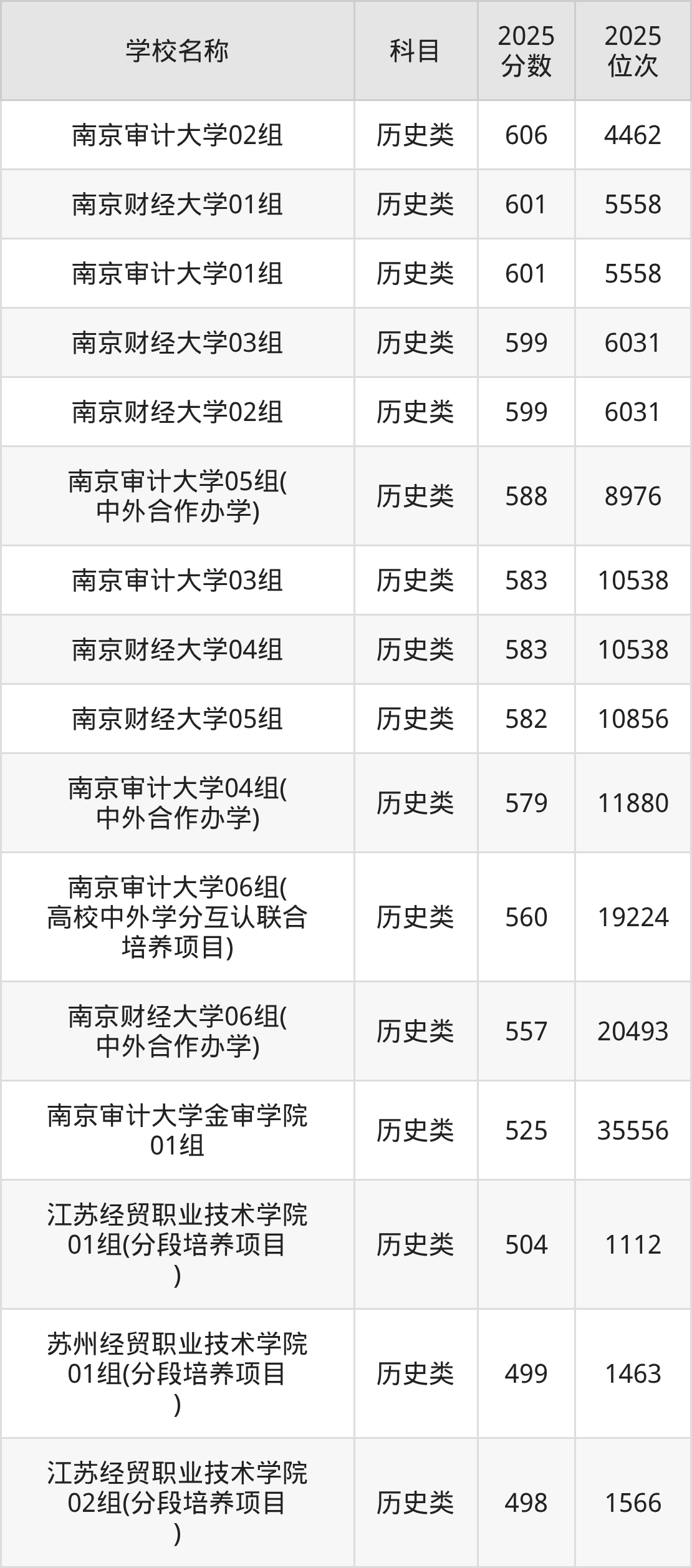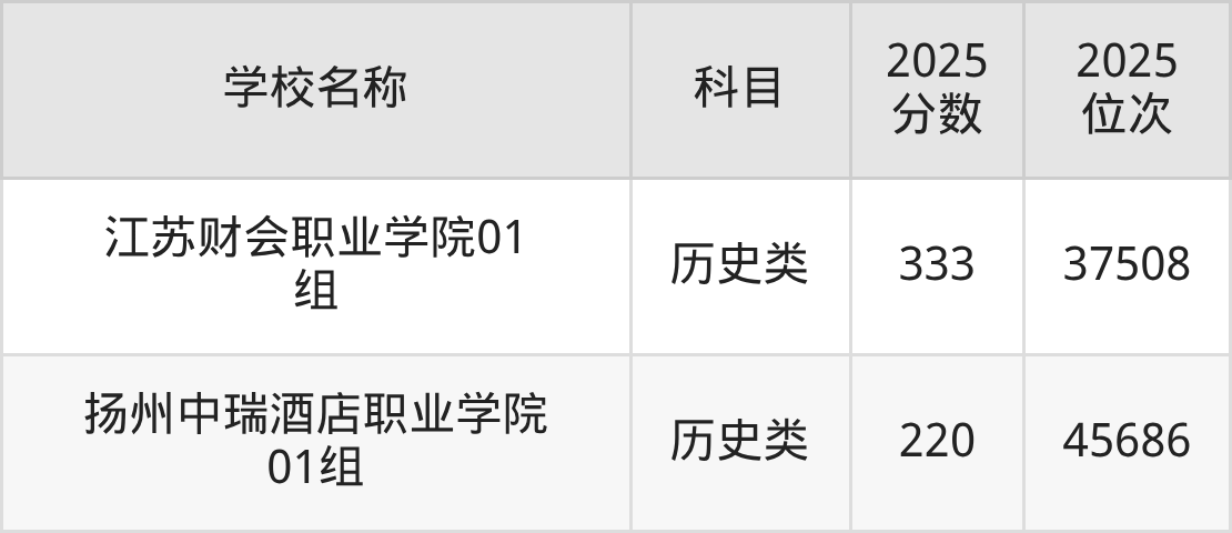下文为2025年江苏省财经类大学在江苏历史类录取分数线和位次排名表,供大家参考: