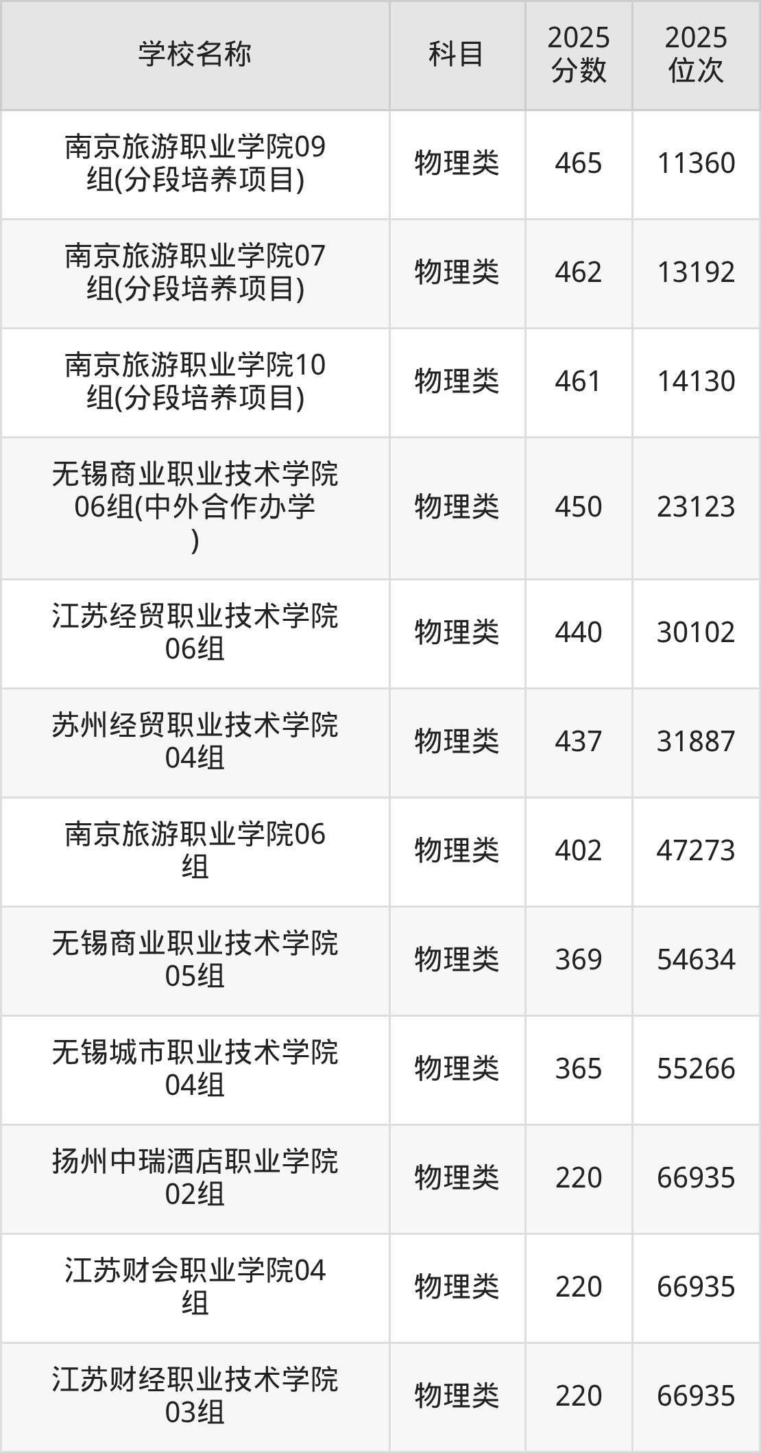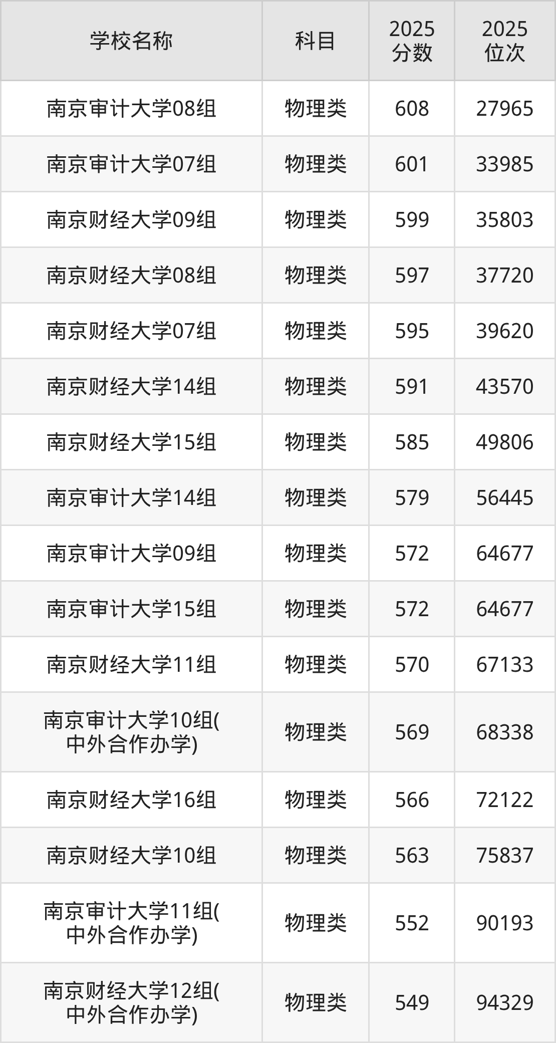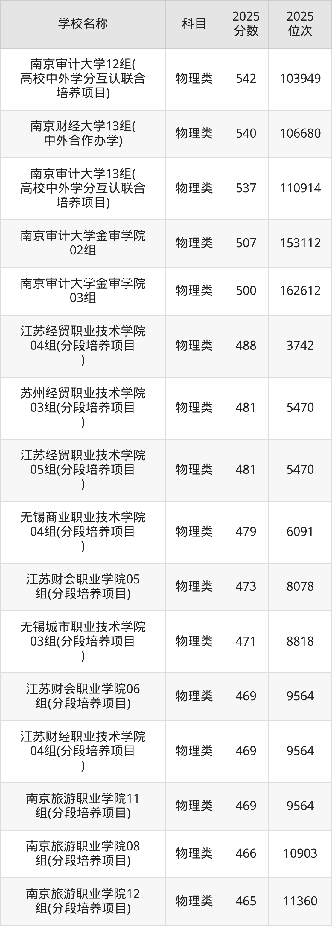 下文为2025年江苏省财经类大学在江苏物理类录取分数线和位次排名表,供大家参考: