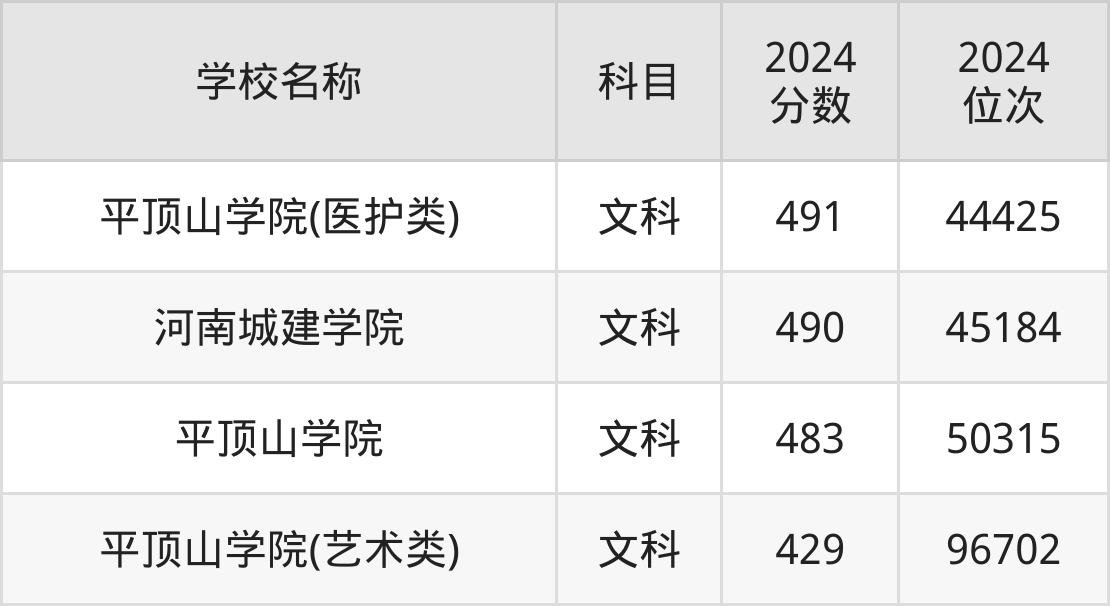 下文为2024年平顶山市本科大学在河南文科录取分数线和位次排名表,供大家参考: