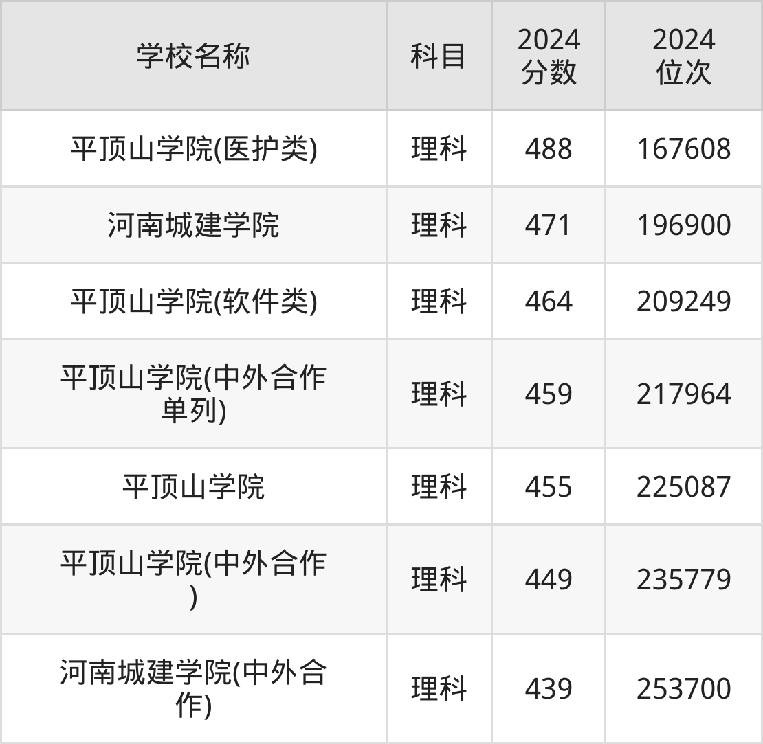下文为2024年平顶山市本科大学在河南理科录取分数线和位次排名表,供大家参考: