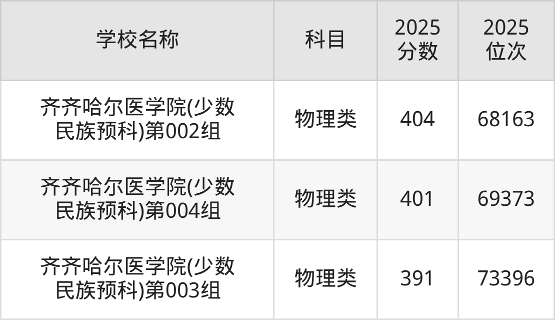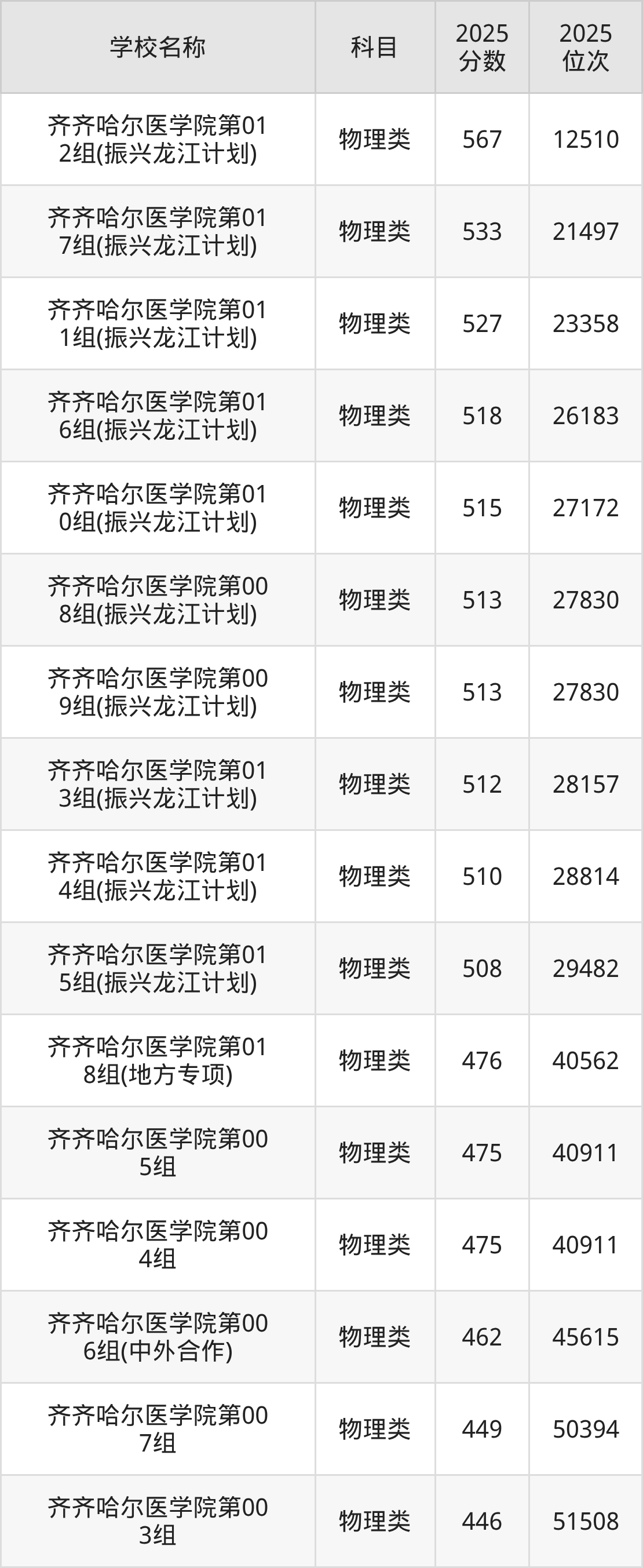下文为2025年齐齐哈尔市公办二本大学在黑龙江物理类录取分数线和位次排名表,供大家参考:
