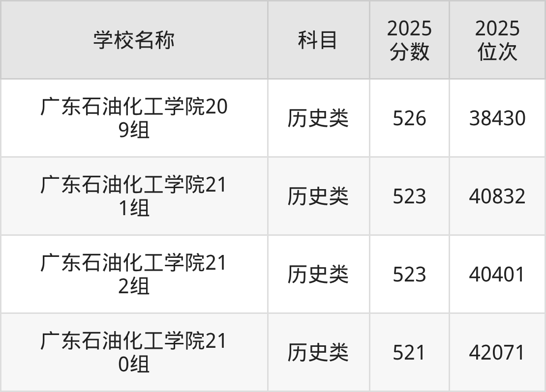 下文为2025年茂名市本科大学在广东历史类录取分数线和位次排名表,供大家参考:
