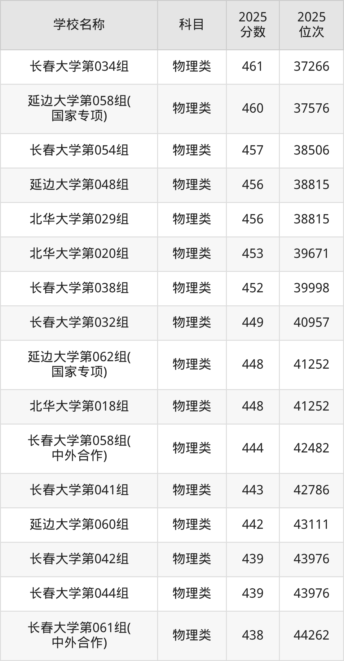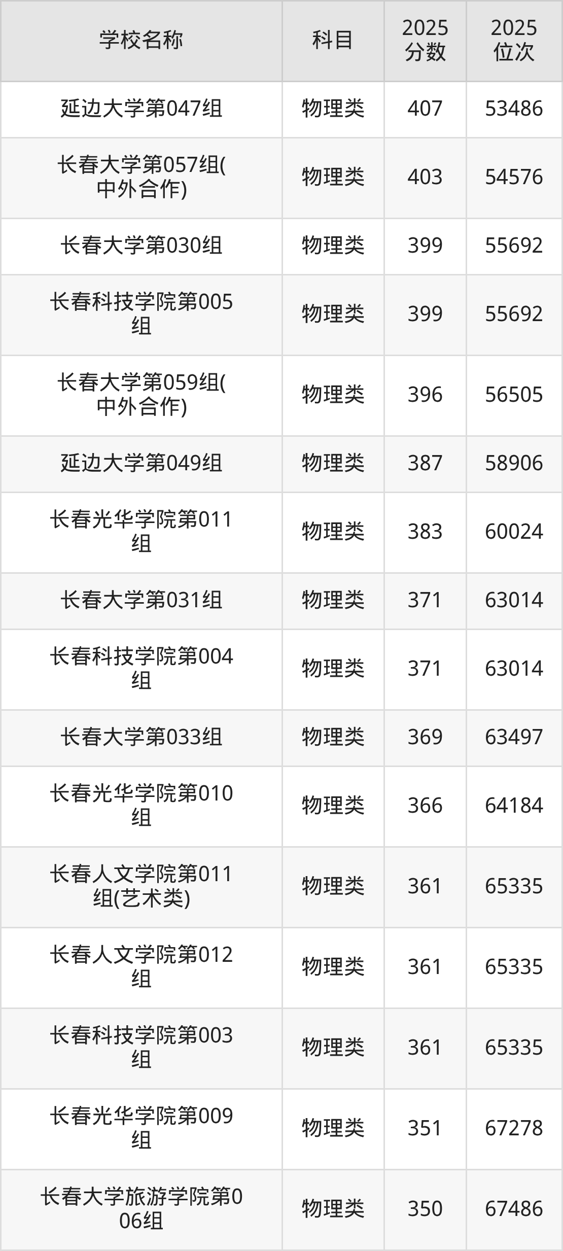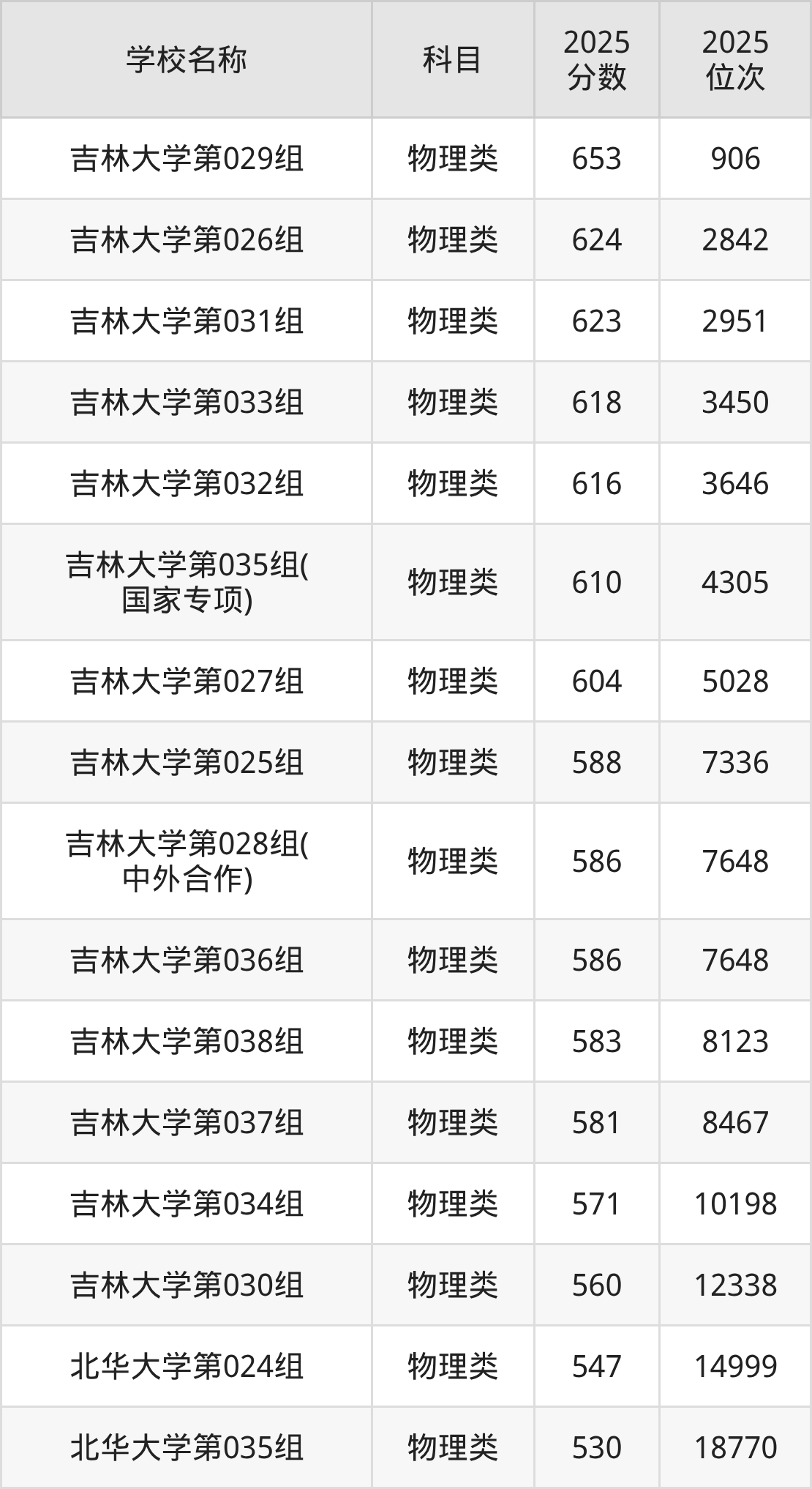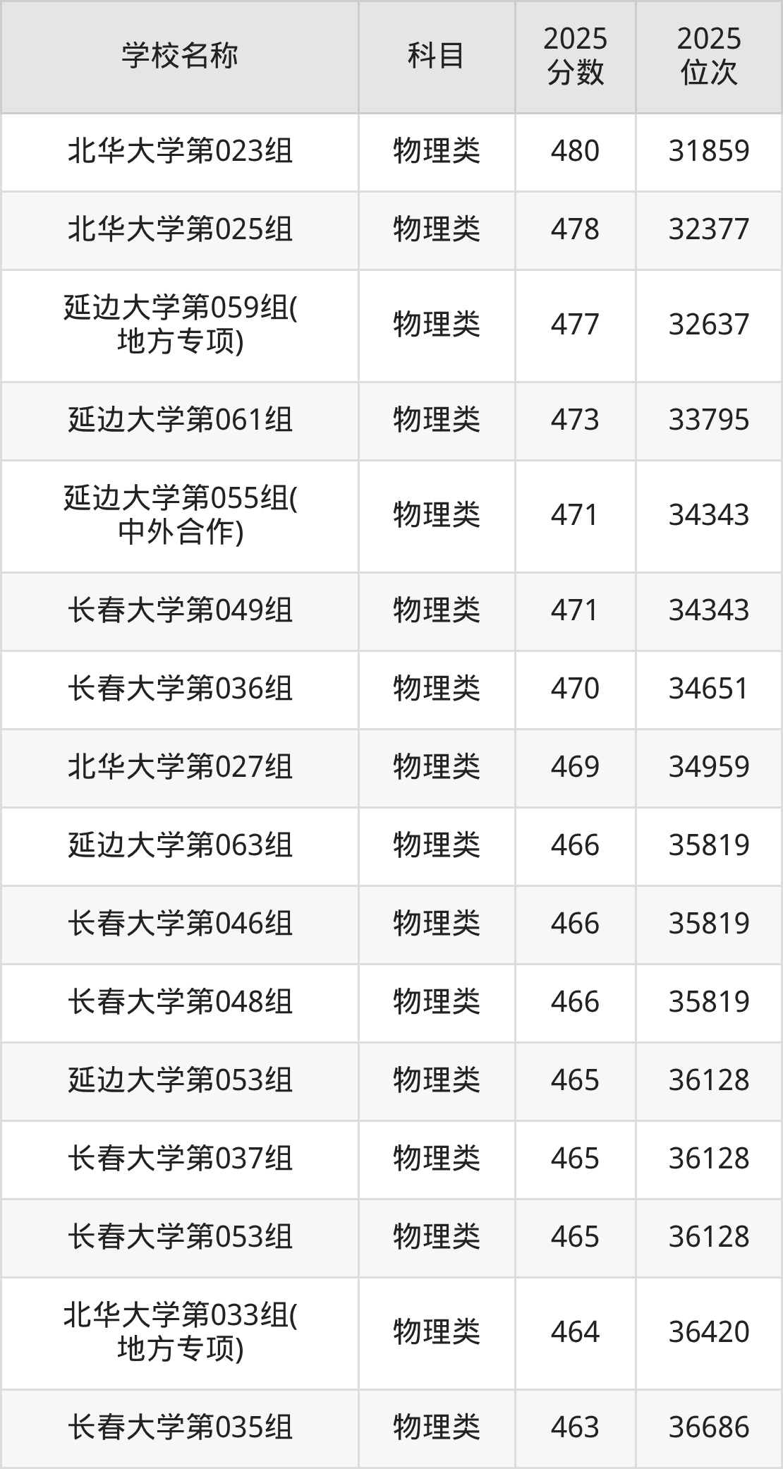 下文为2025年吉林省综合类大学在吉林物理类录取分数线和位次排名表,供大家参考: