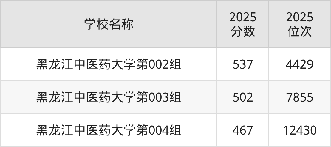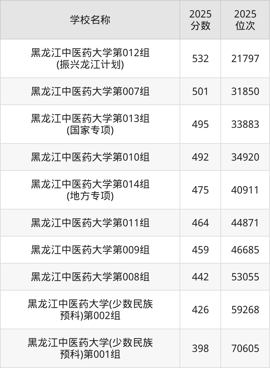 下文为2025年哈尔滨市中医药大学在黑龙江历史类录取分数线和位次排名表,供大家参考: