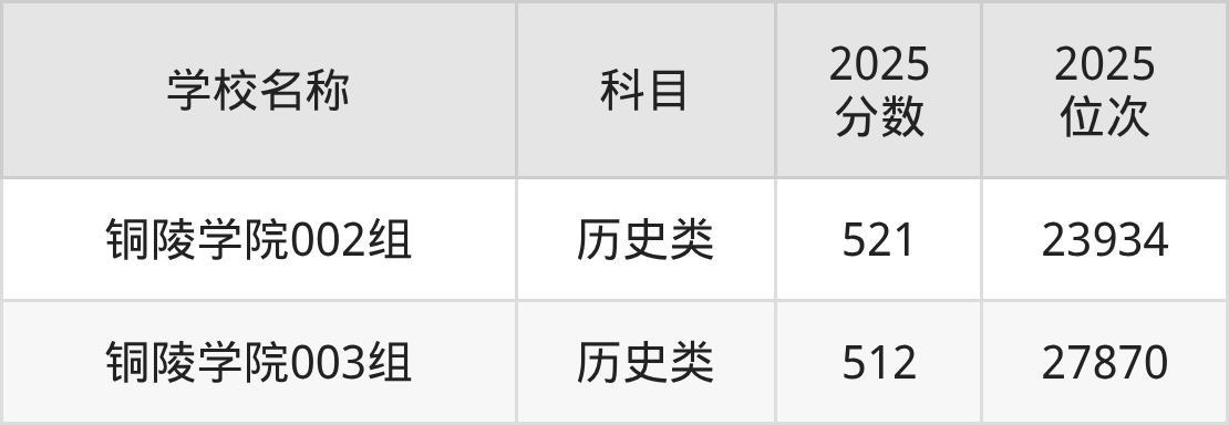 下文为2025年铜陵市公办二本大学在安徽历史类录取分数线和位次排名表,供大家参考:
