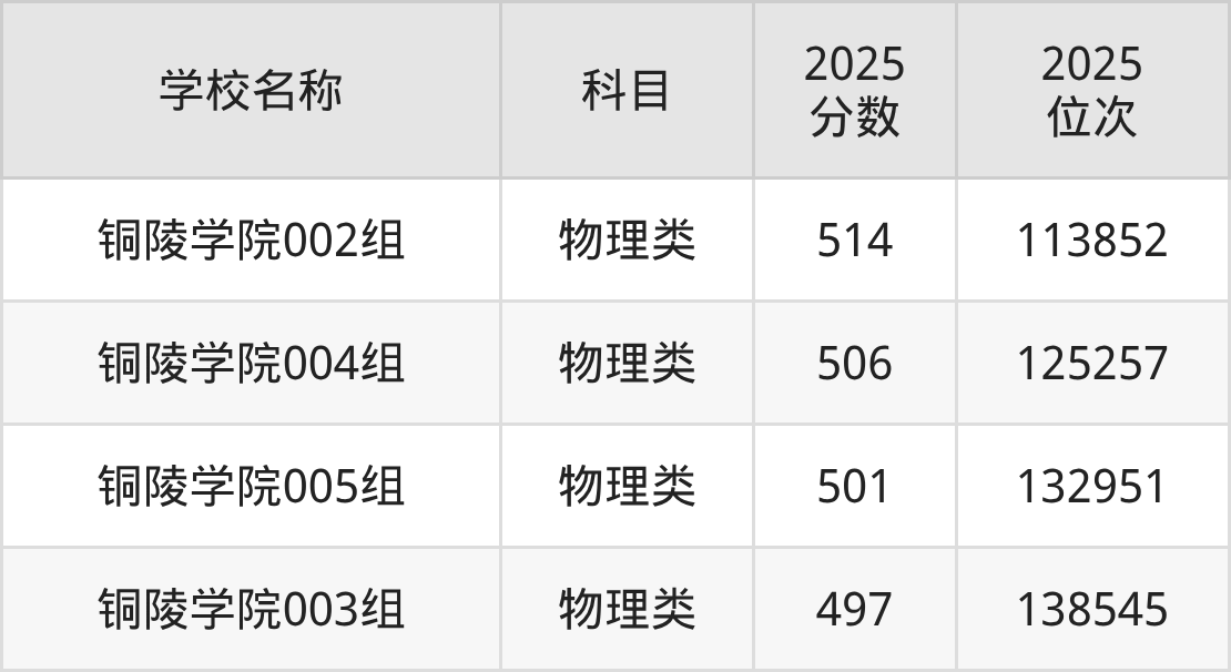 下文为2025年铜陵市公办二本大学在安徽物理类录取分数线和位次排名表,供大家参考: