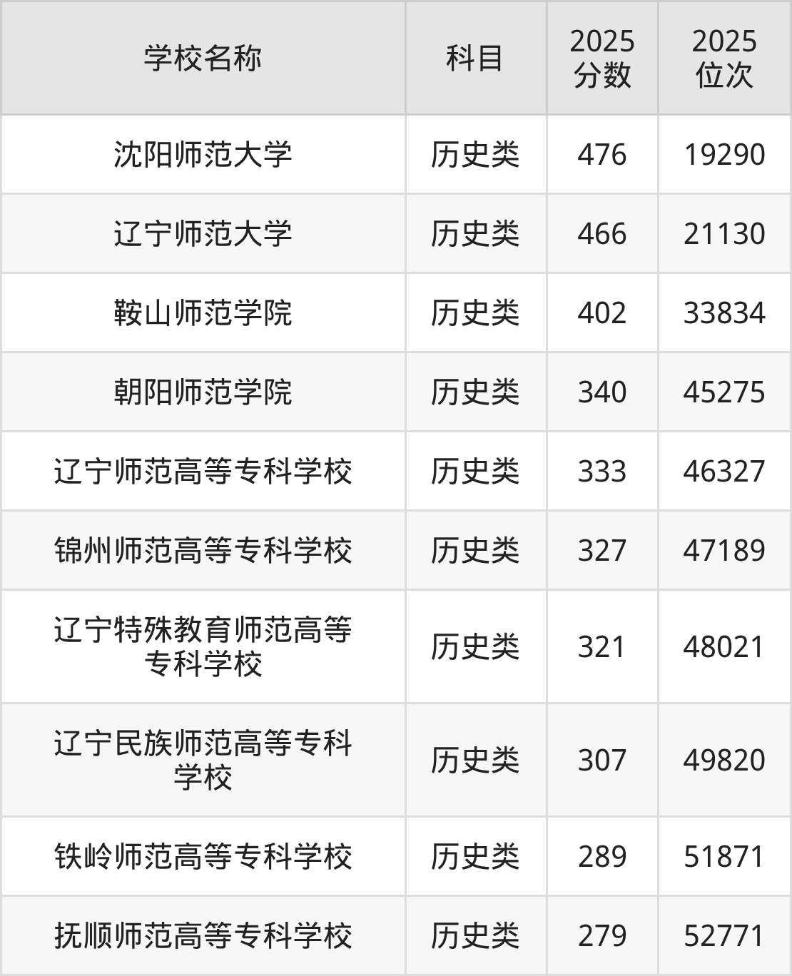 下文为2025年辽宁省师范类大学在辽宁历史类录取分数线和位次排名表,供大家参考: