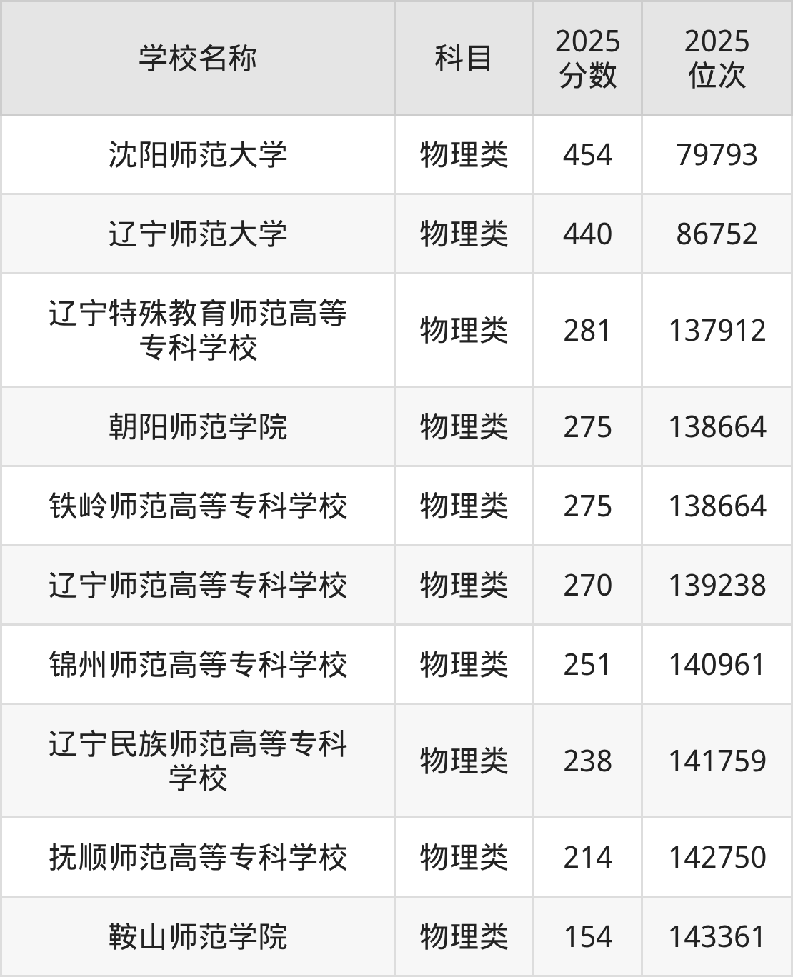 下文为2025年辽宁省师范类大学在辽宁物理类录取分数线和位次排名表,供大家参考: