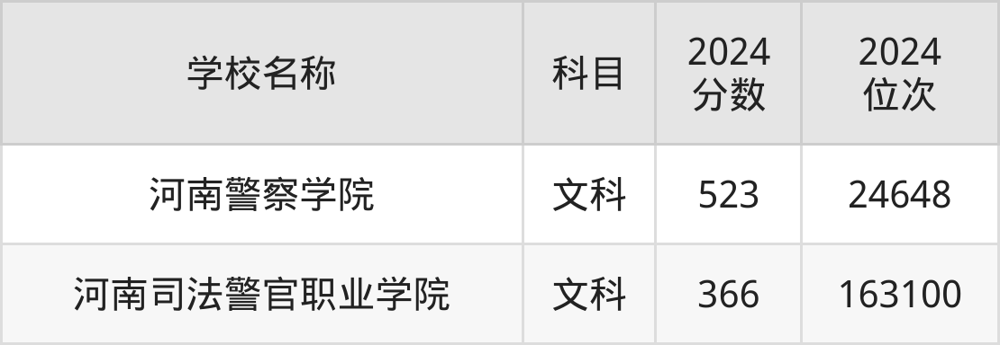 下文为2024年郑州市公安警察大学在河南文科录取分数线和位次排名表,供大家参考: