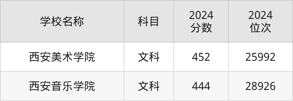 下文为2024年陕西省二本艺术大学在陕西文科录取分数线和位次排名表,供大家参考: