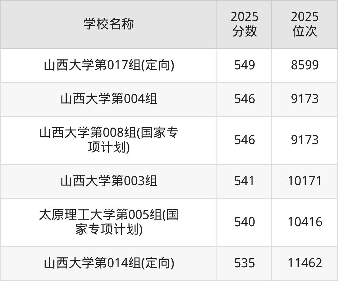 下文为2025年山西省双一流大学在山西物理类录取分数线和位次排名表,供大家参考: