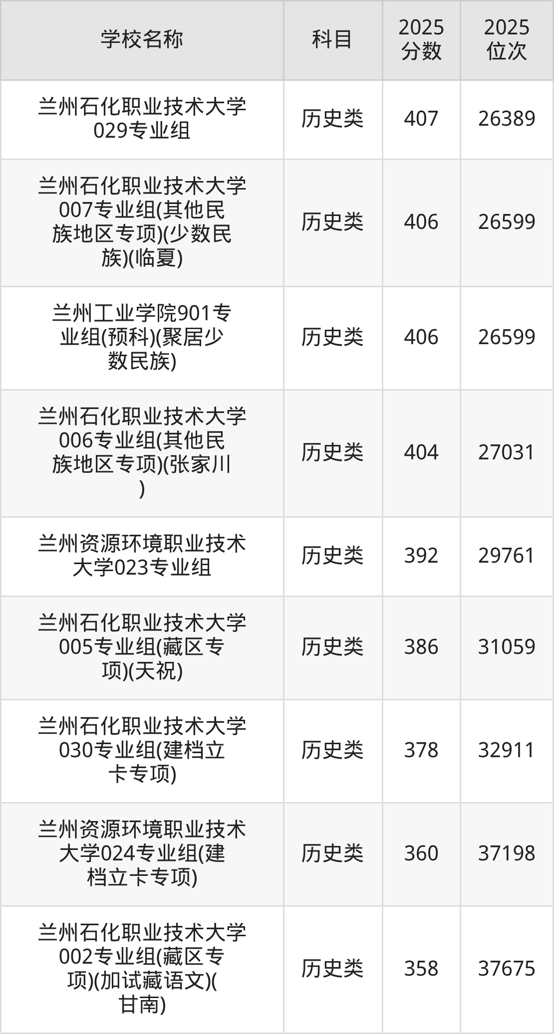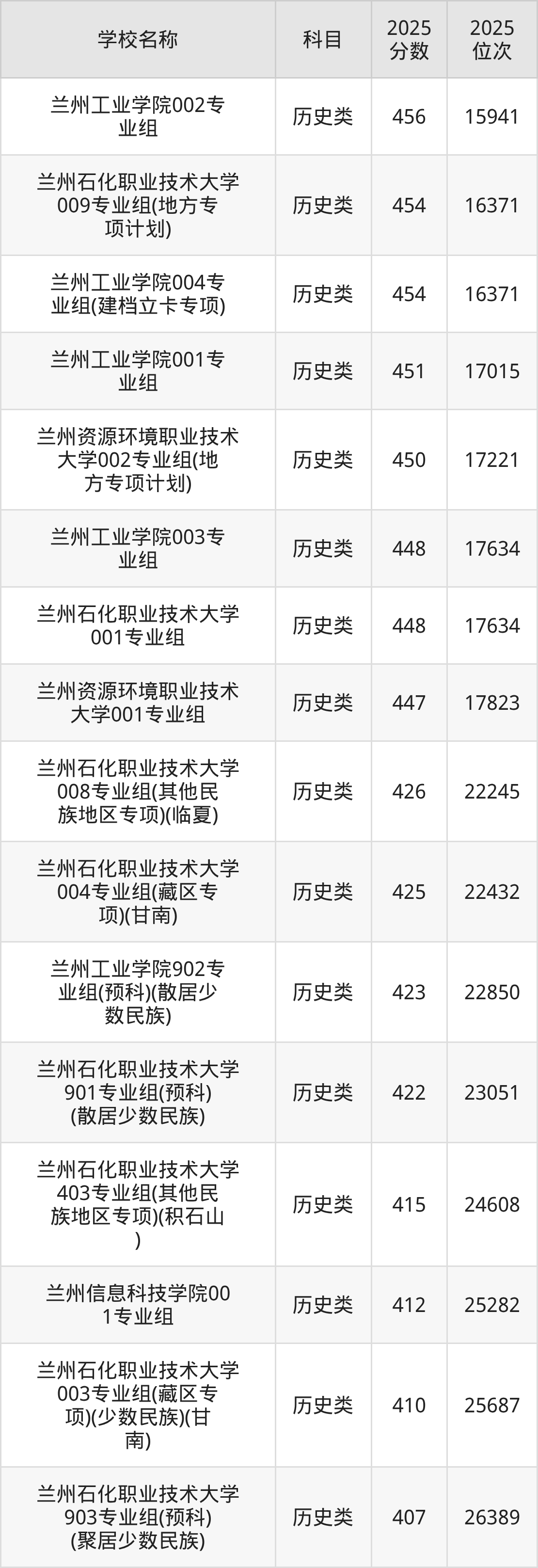下文为2025年兰州市二本理工大学在甘肃历史类录取分数线和位次排名表,供大家参考: