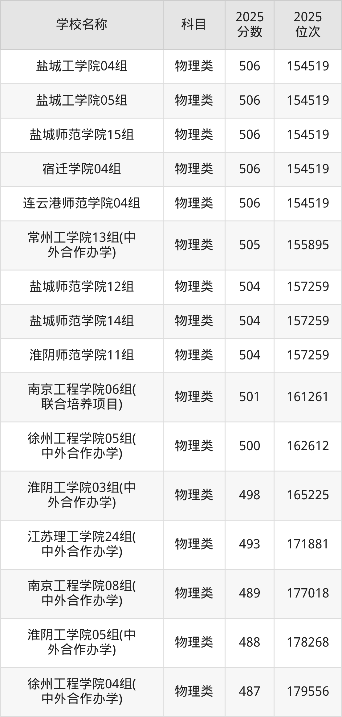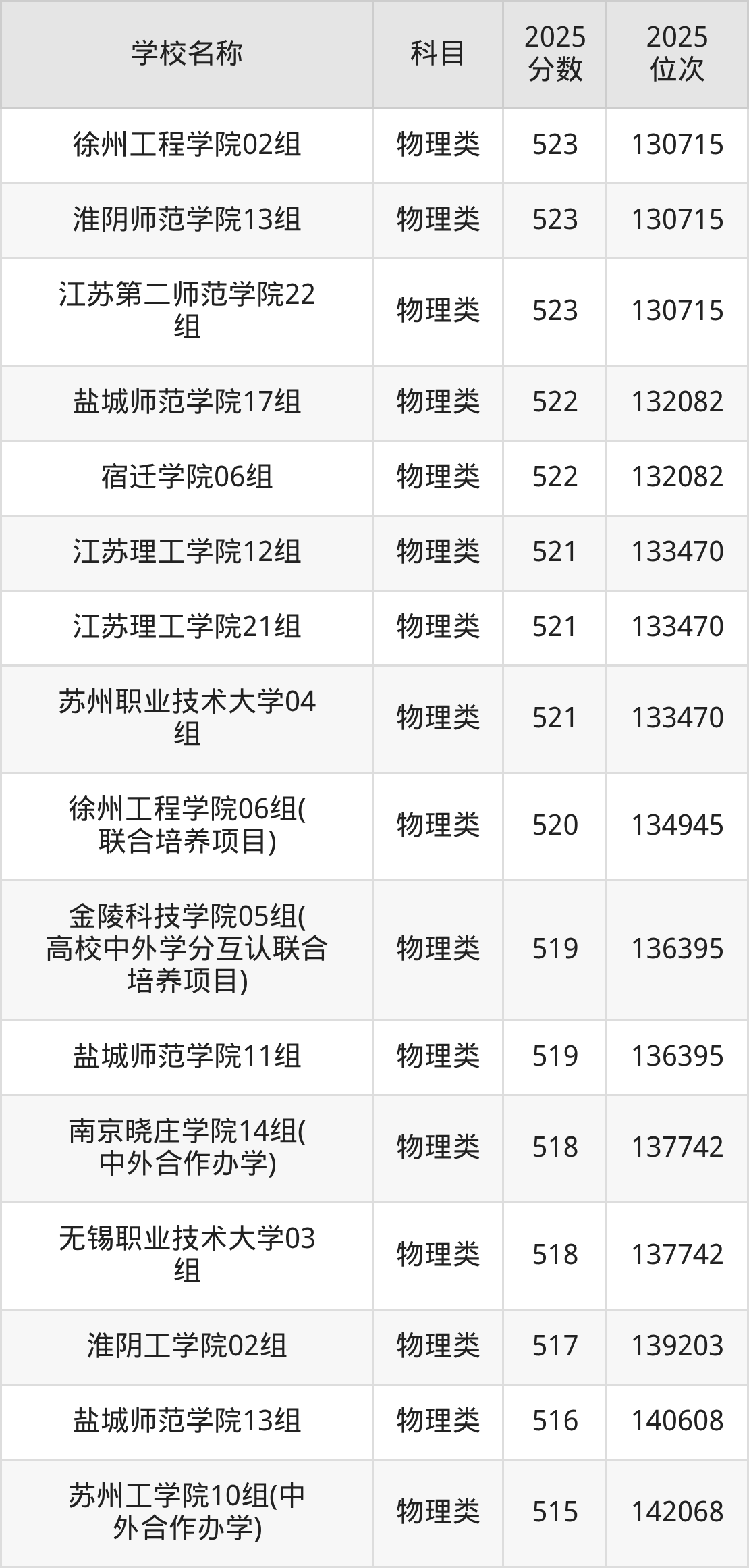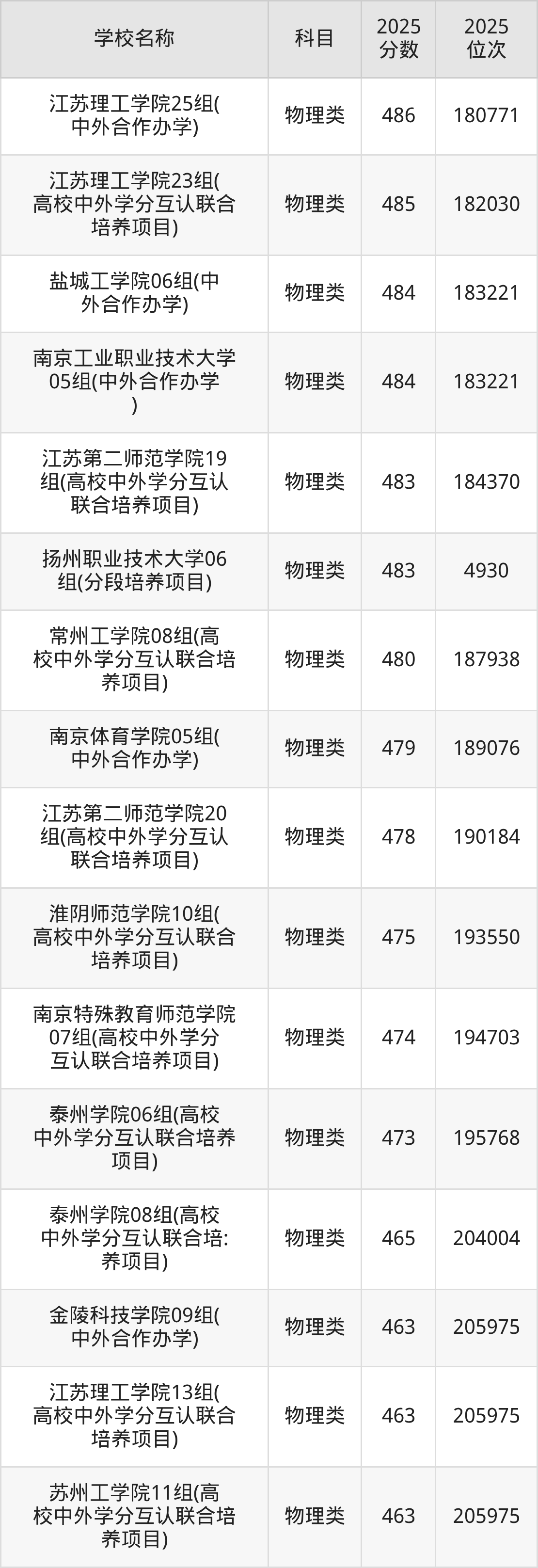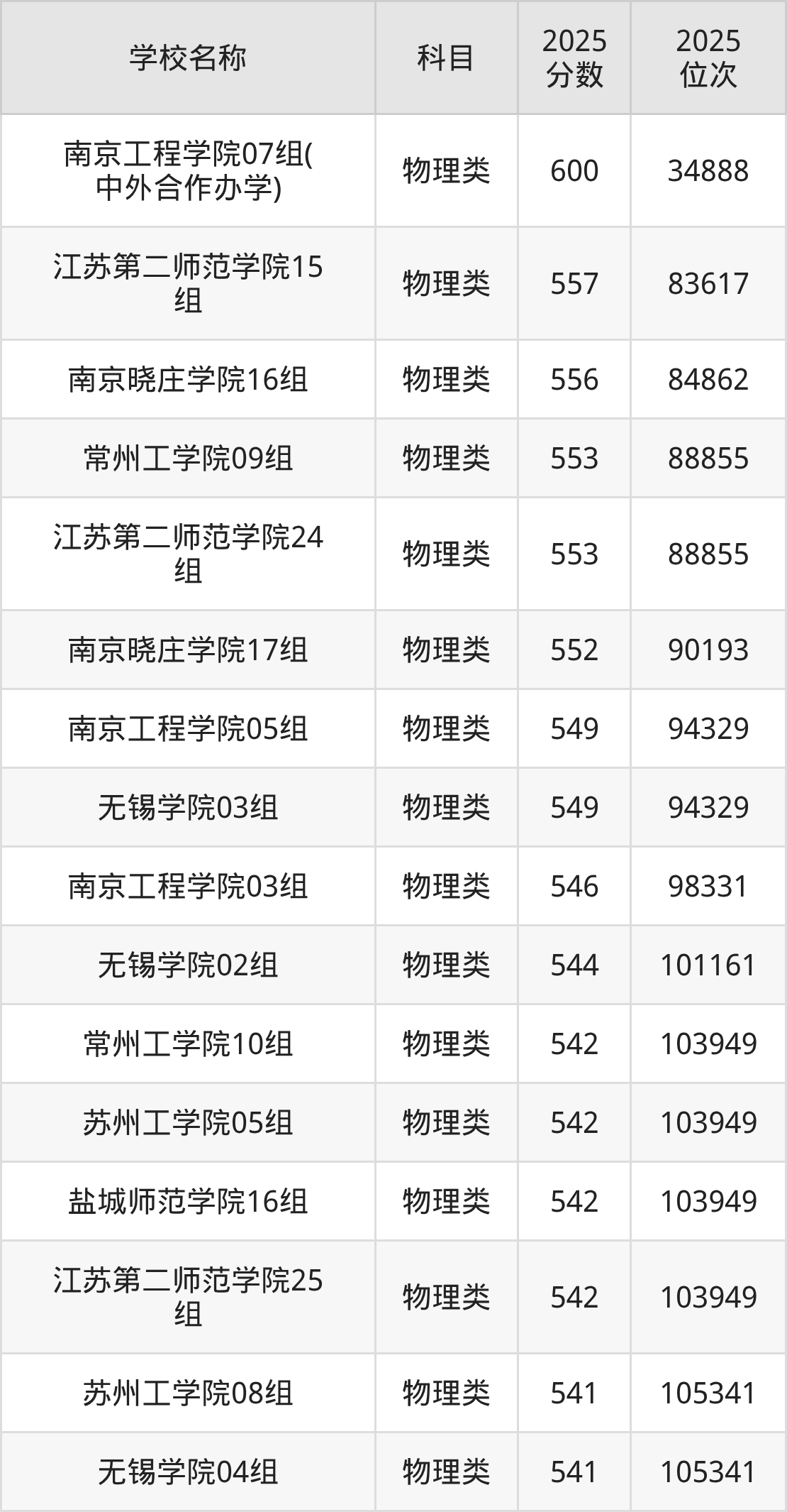 下文为2025年江苏省公办二本大学在江苏物理类录取分数线和位次排名表,供大家参考: