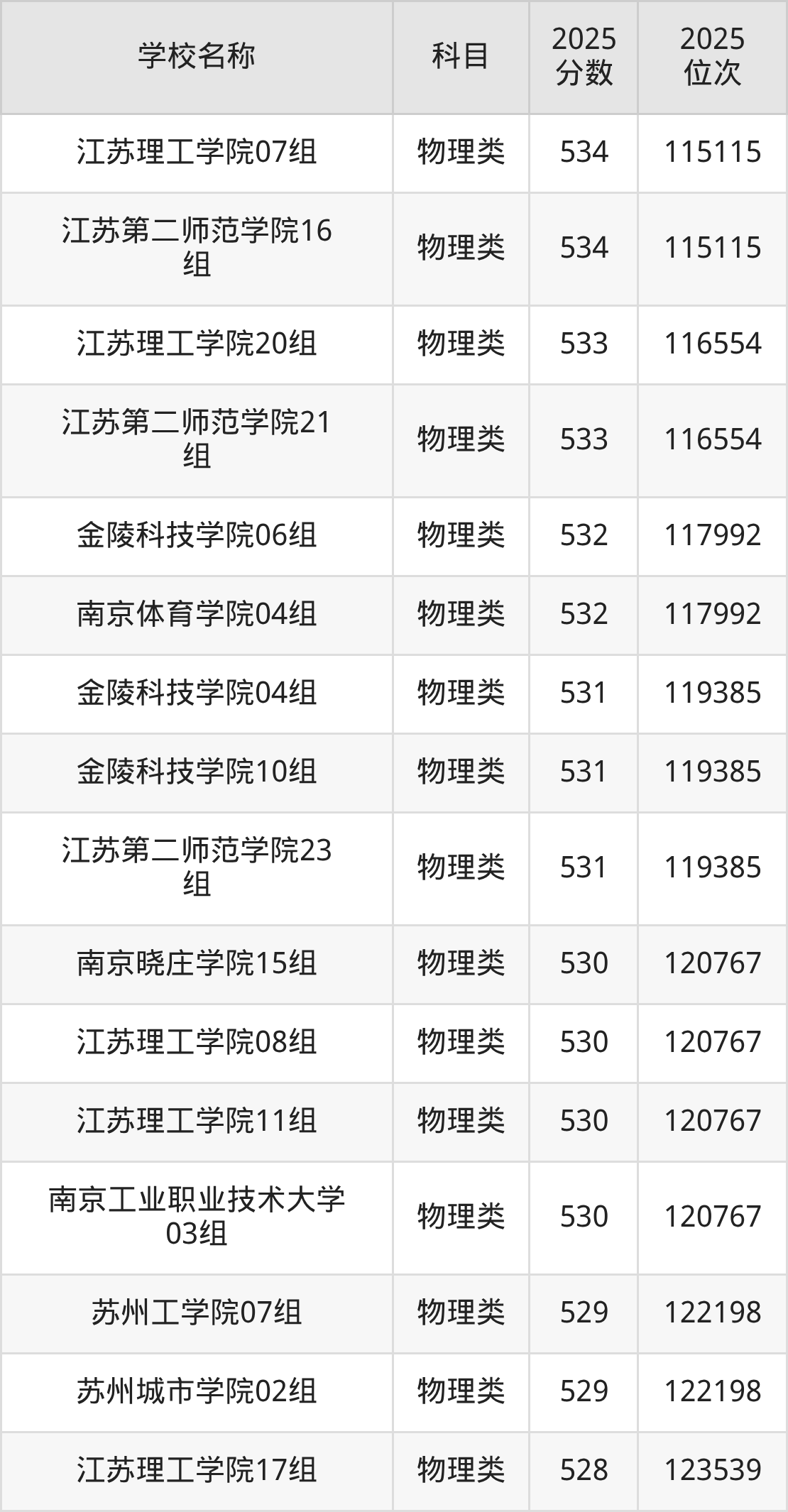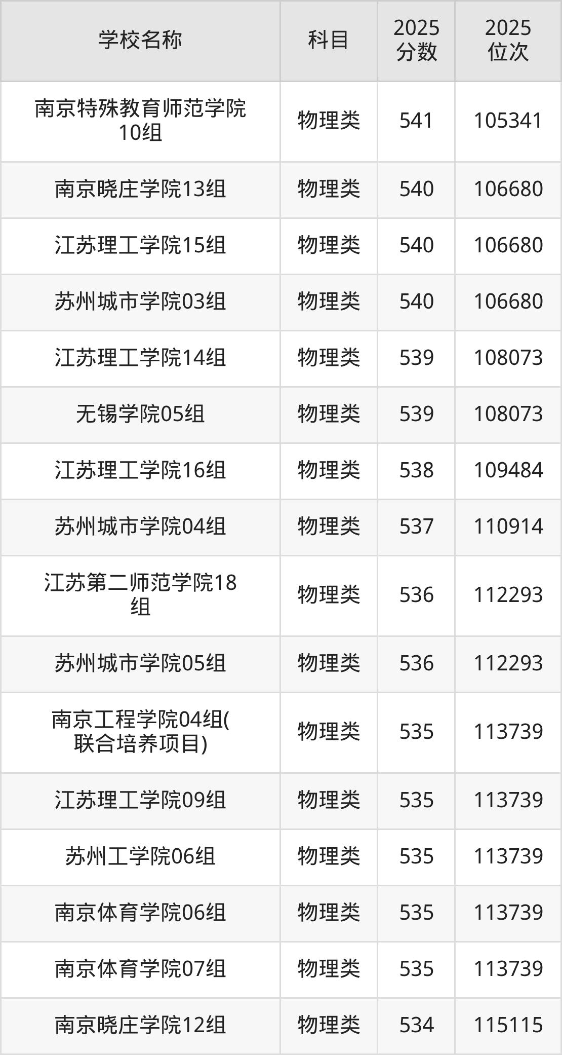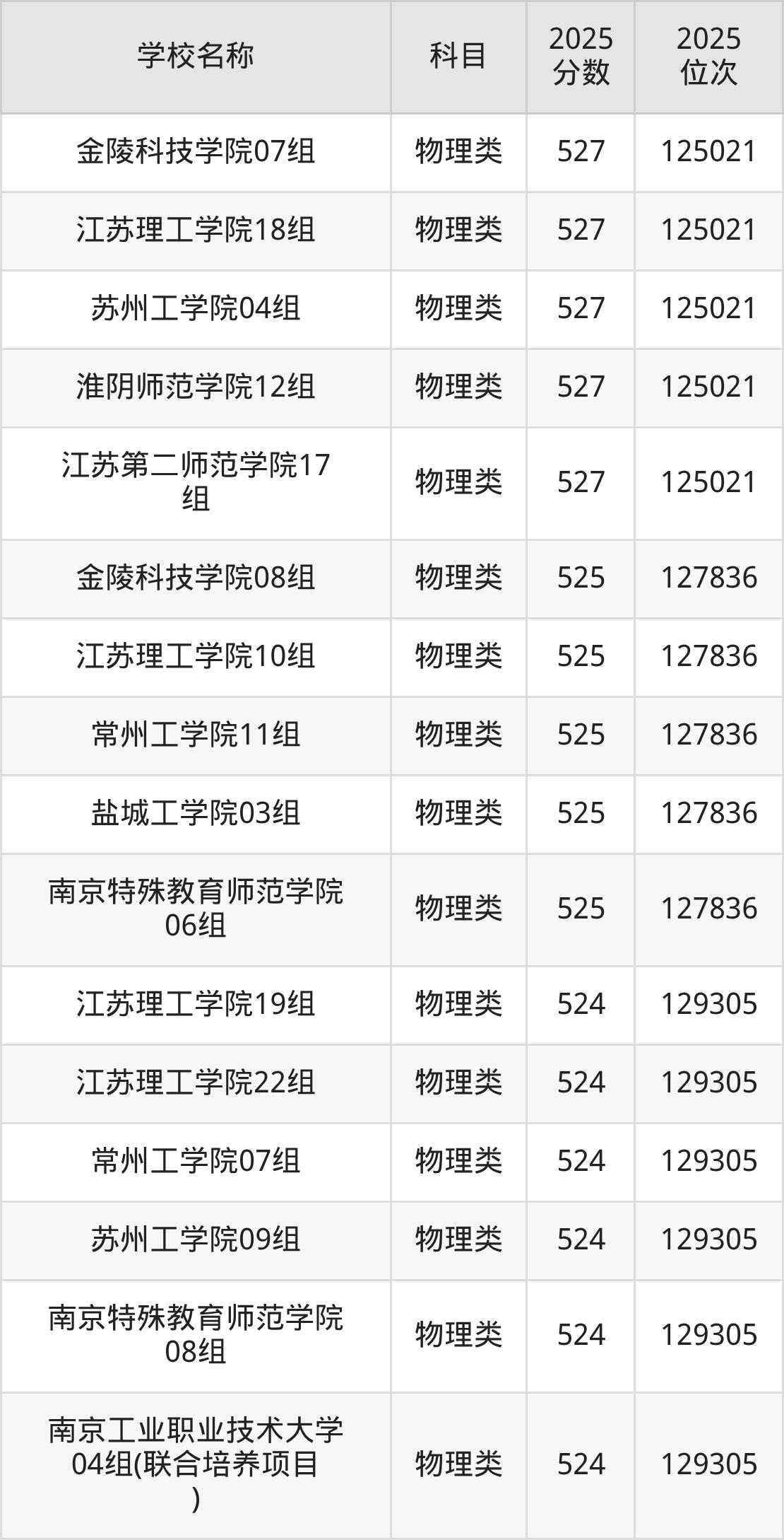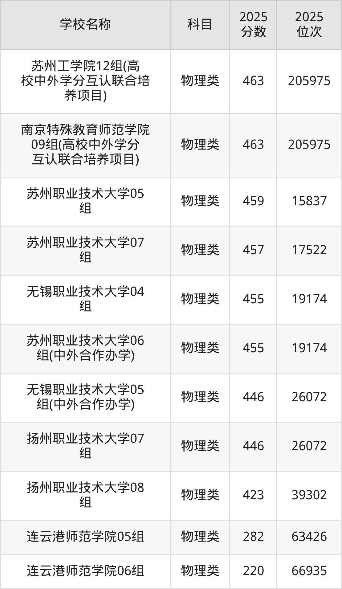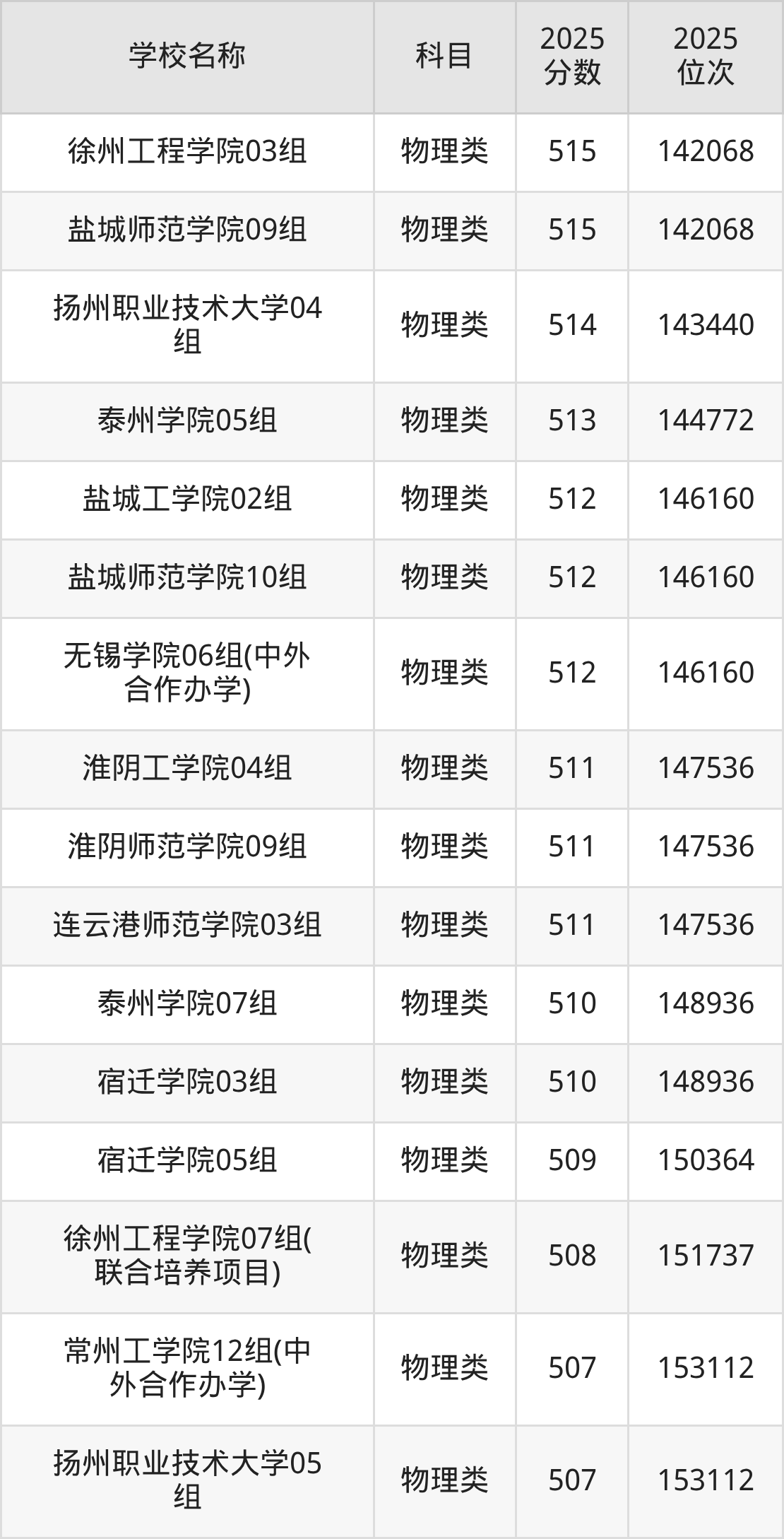 下文为2025年江苏省公办二本大学在江苏物理类录取分数线和位次排名表,供大家参考: