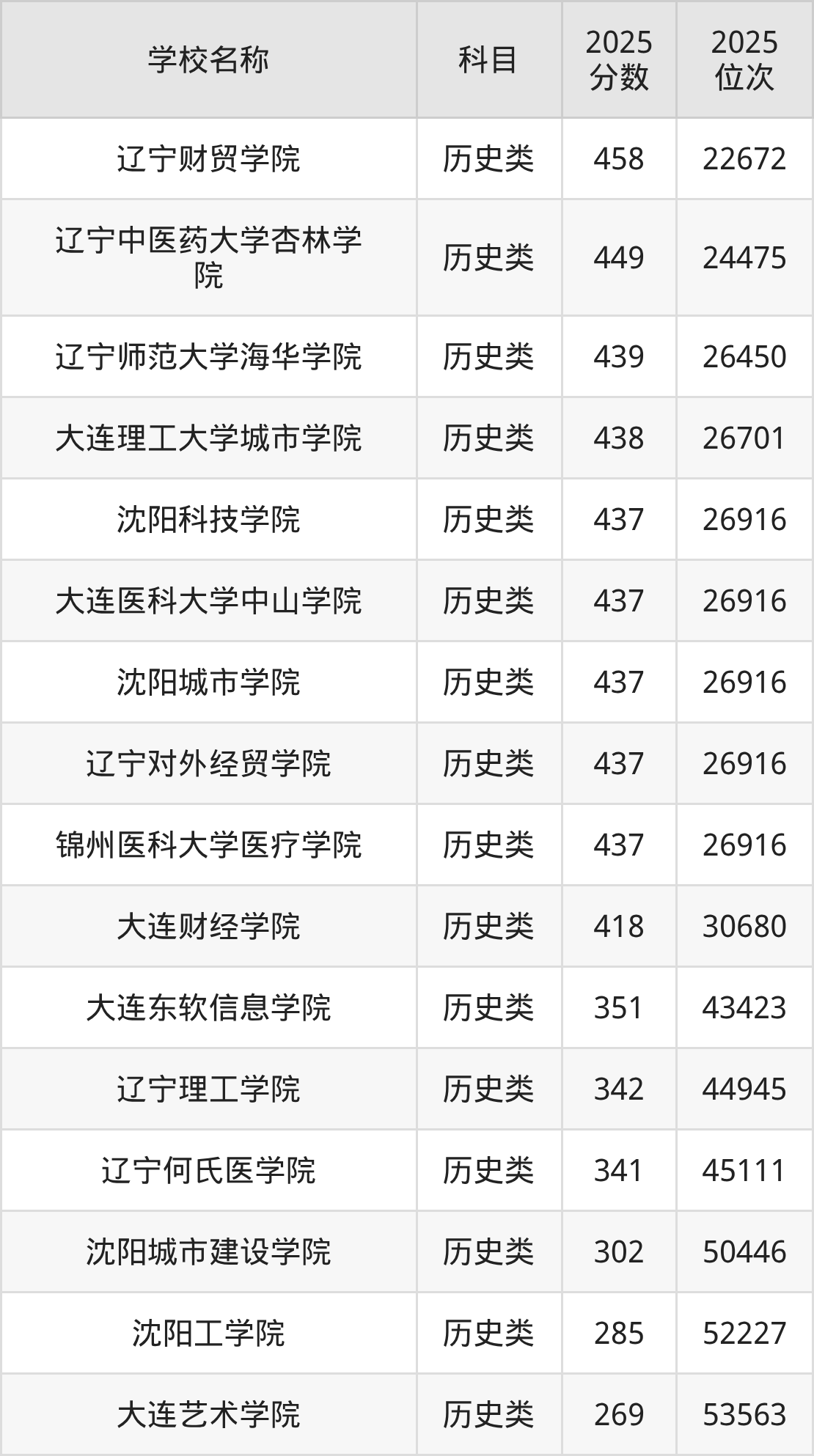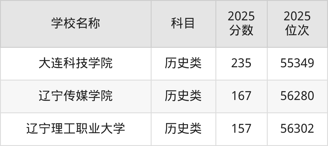 下文为2025年辽宁省民办二本大学在辽宁历史类录取分数线和位次排名表,供大家参考: