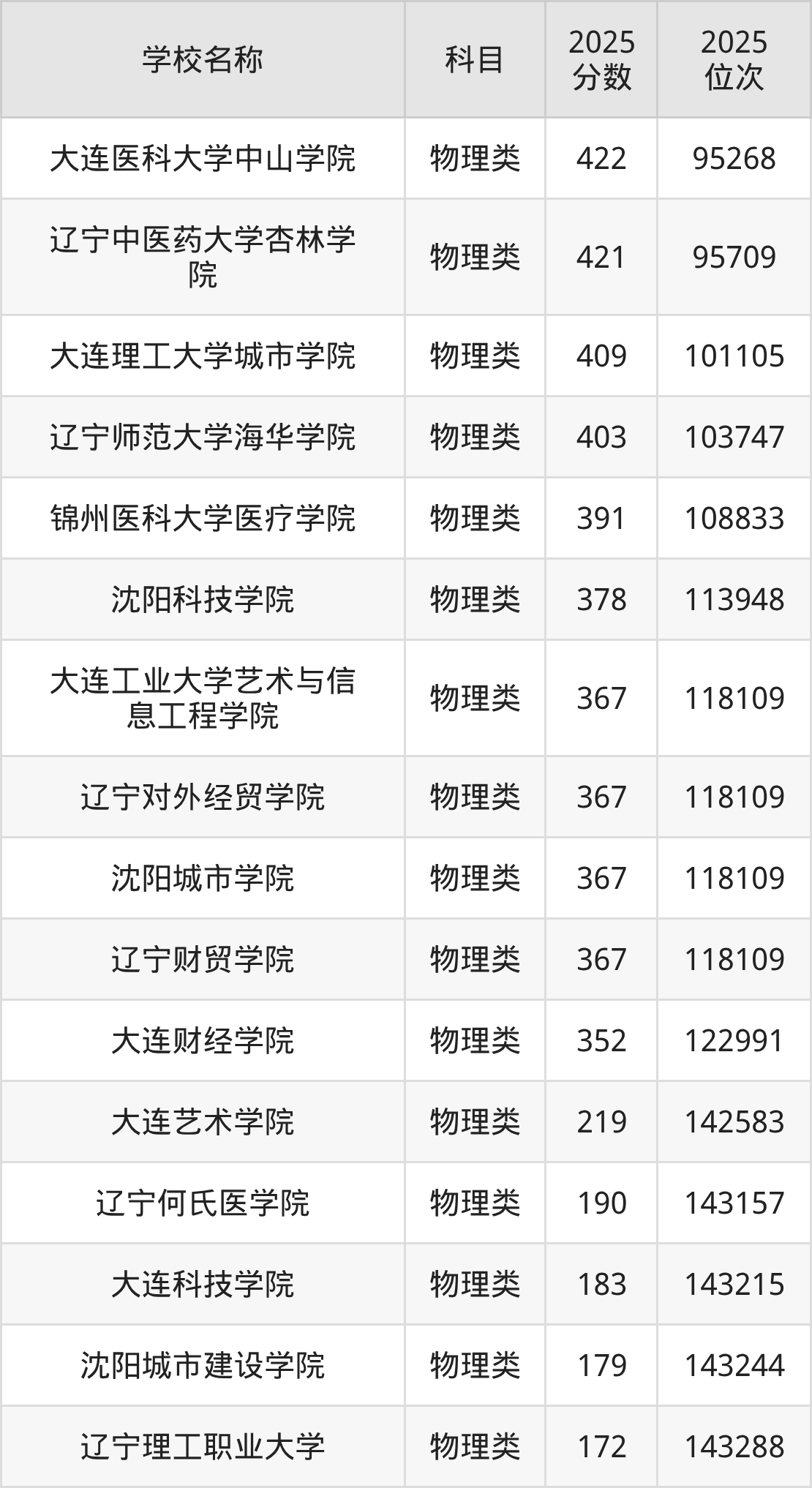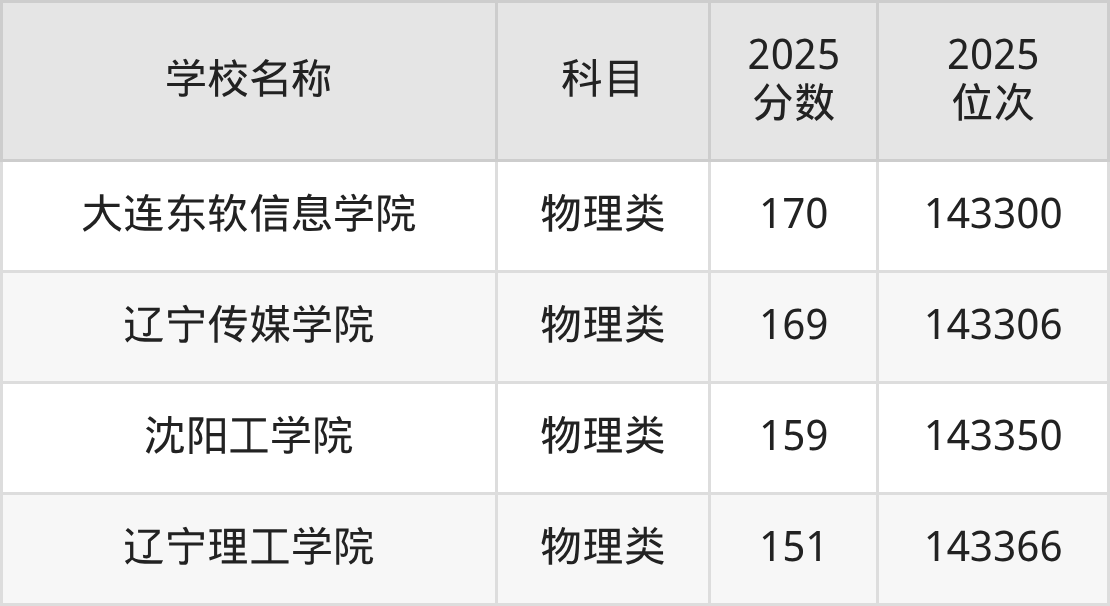 下文为2025年辽宁省民办二本大学在辽宁物理类录取分数线和位次排名表,供大家参考: