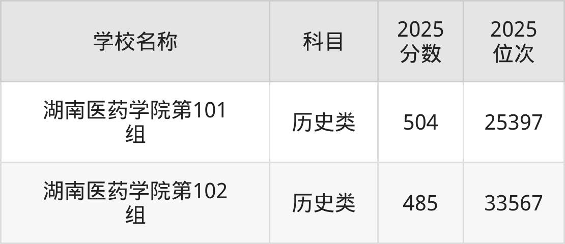 下文为2025年怀化市医科大学在湖南历史类录取分数线和位次排名表,供大家参考: