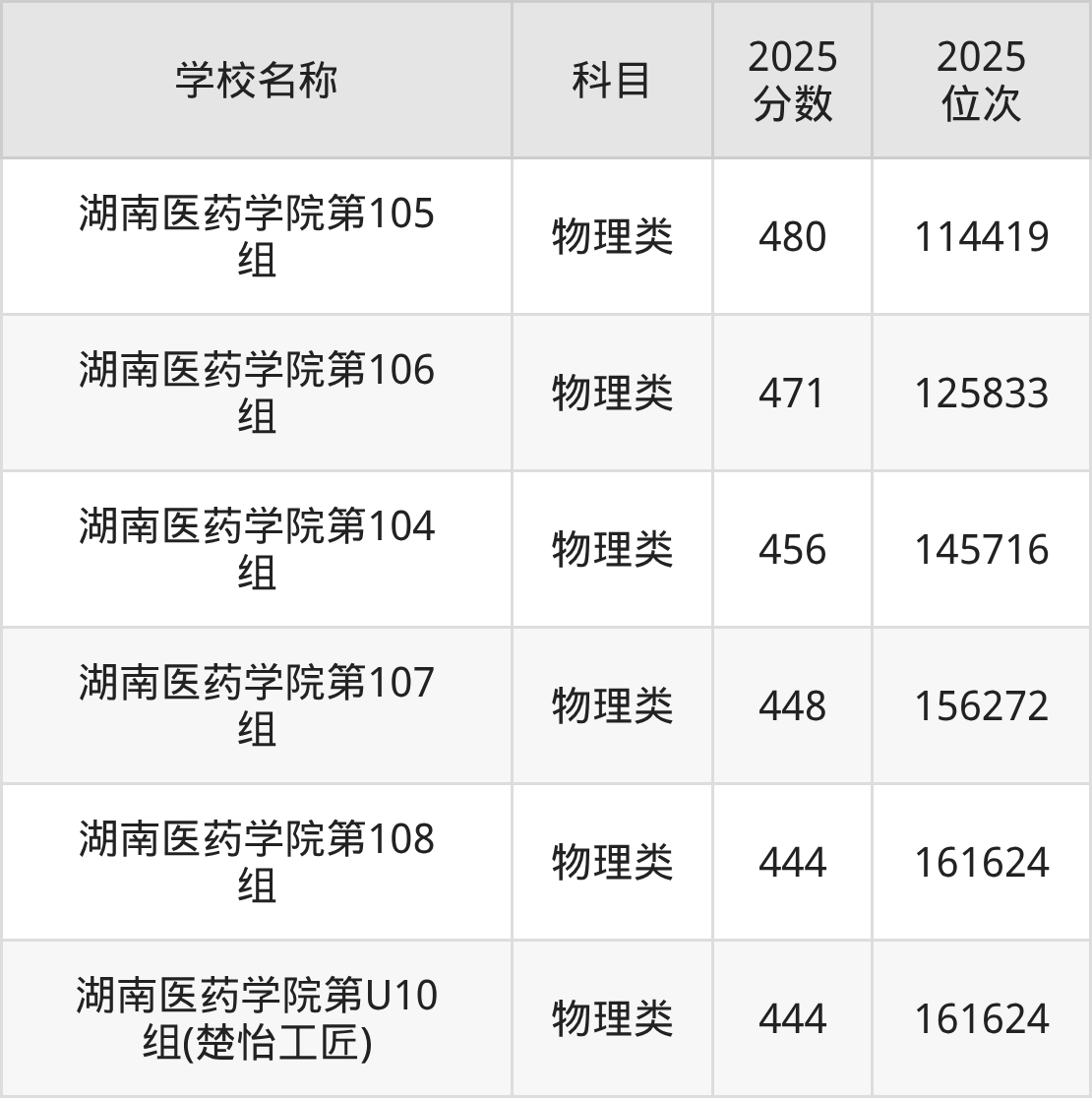 下文为2025年怀化市医科大学在湖南物理类录取分数线和位次排名表,供大家参考: