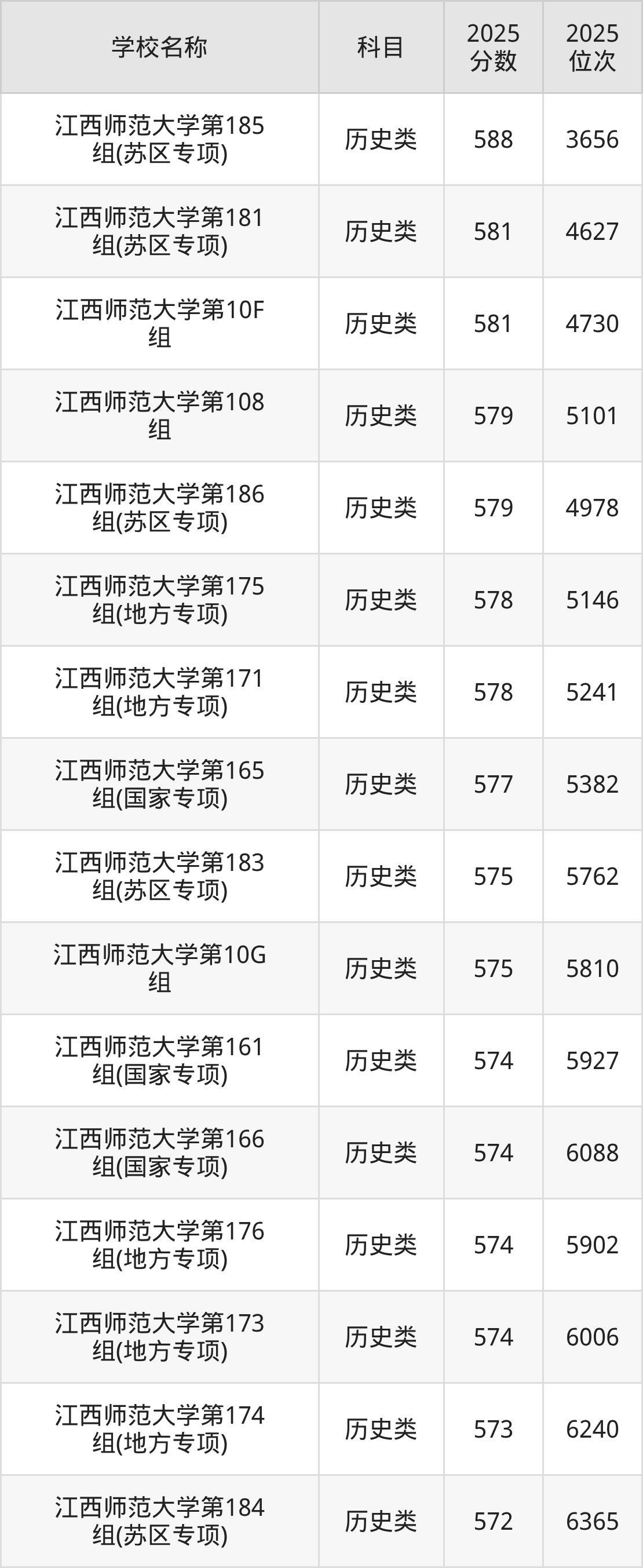 下文为2025年南昌市师范类大学在江西历史类录取分数线和位次排名表,供大家参考: