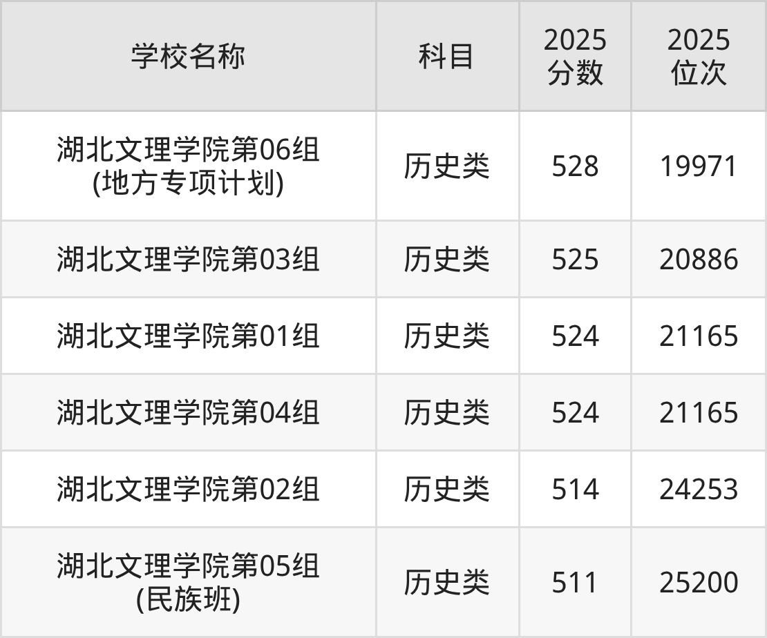 下文为2025年襄阳市二本综合大学在湖北历史类录取分数线和位次排名表,供大家参考: