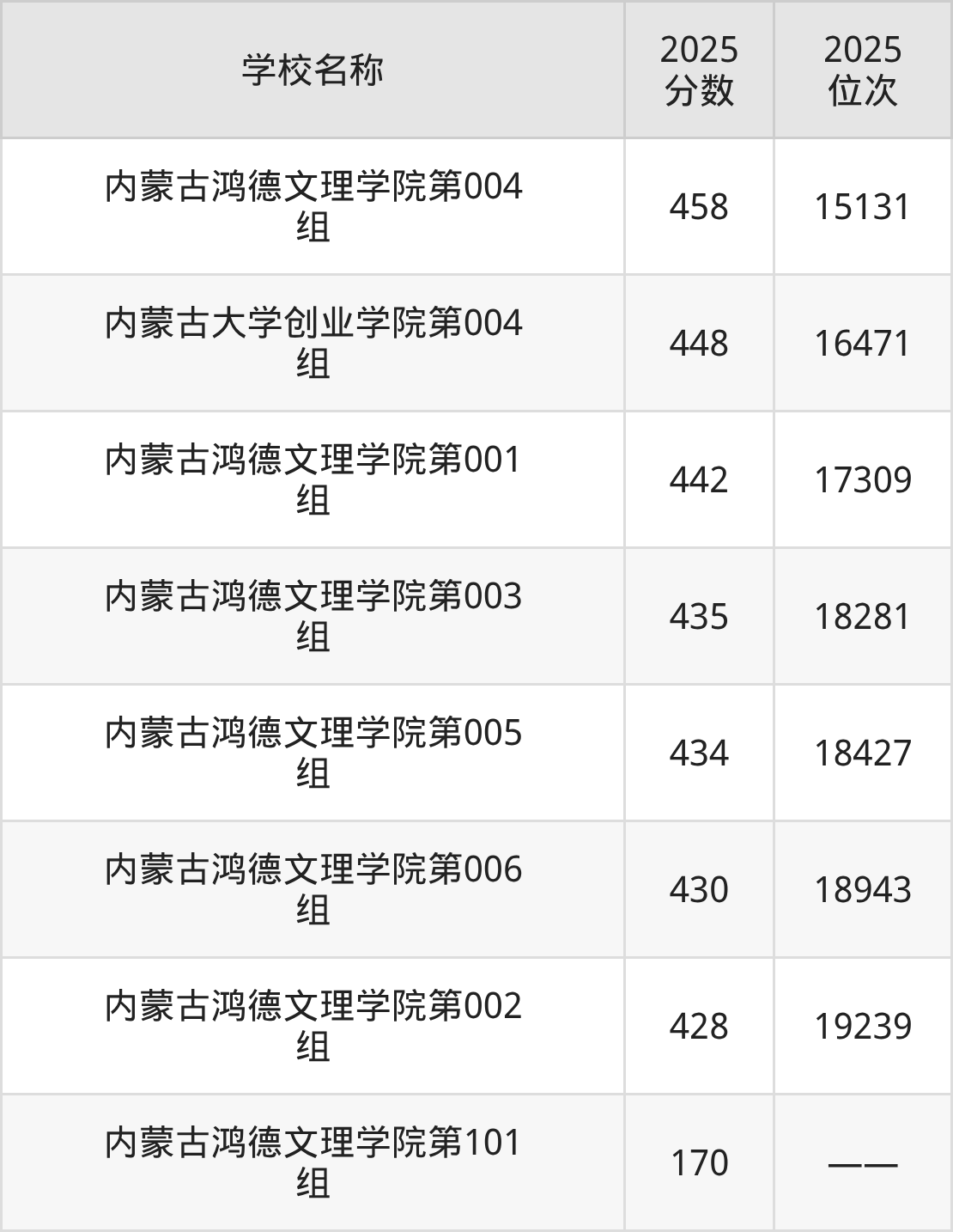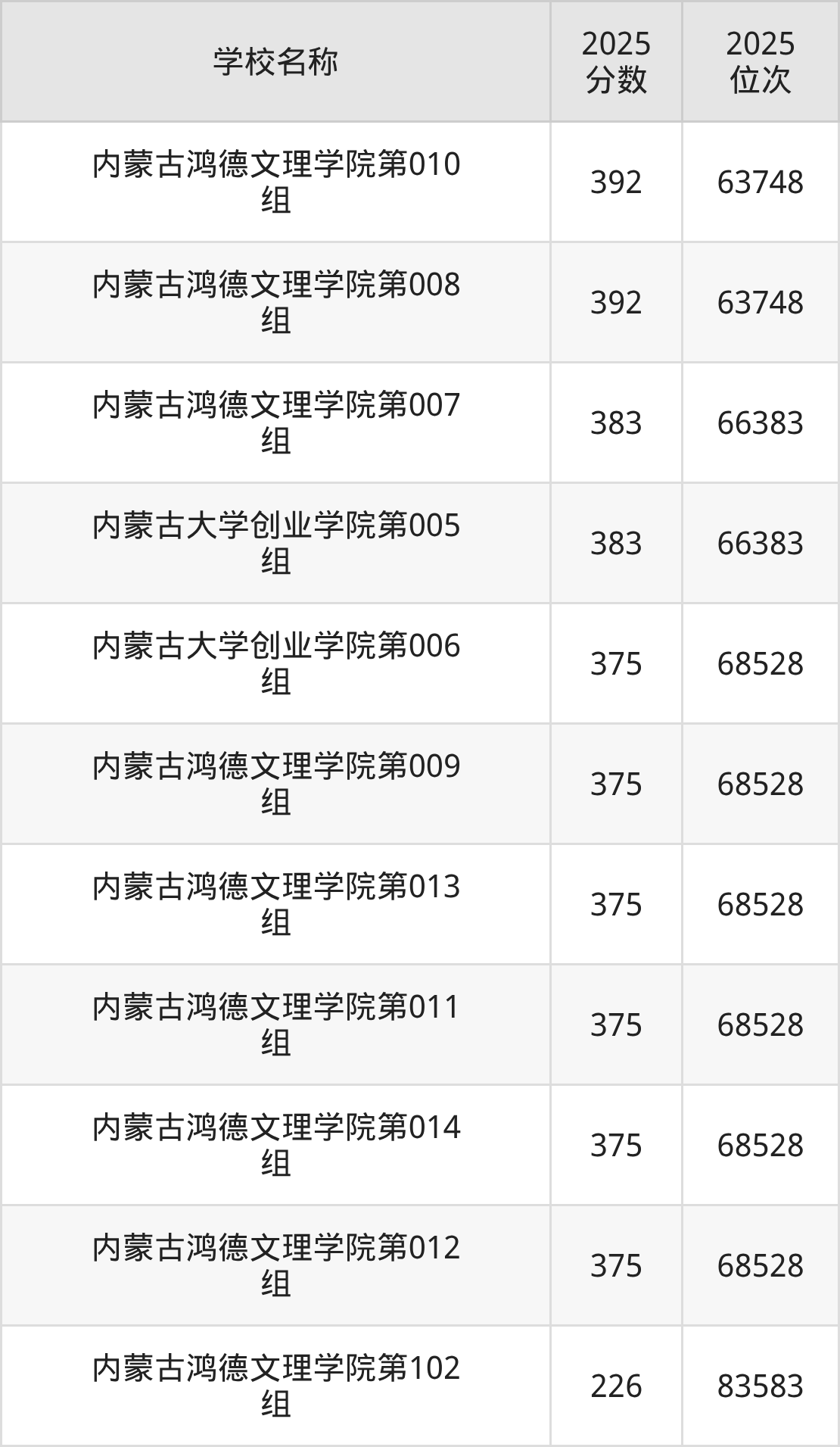 下文为2025年内蒙古自治区民办二本大学在内蒙古历史类录取分数线和位次排名表,供大家参考:
