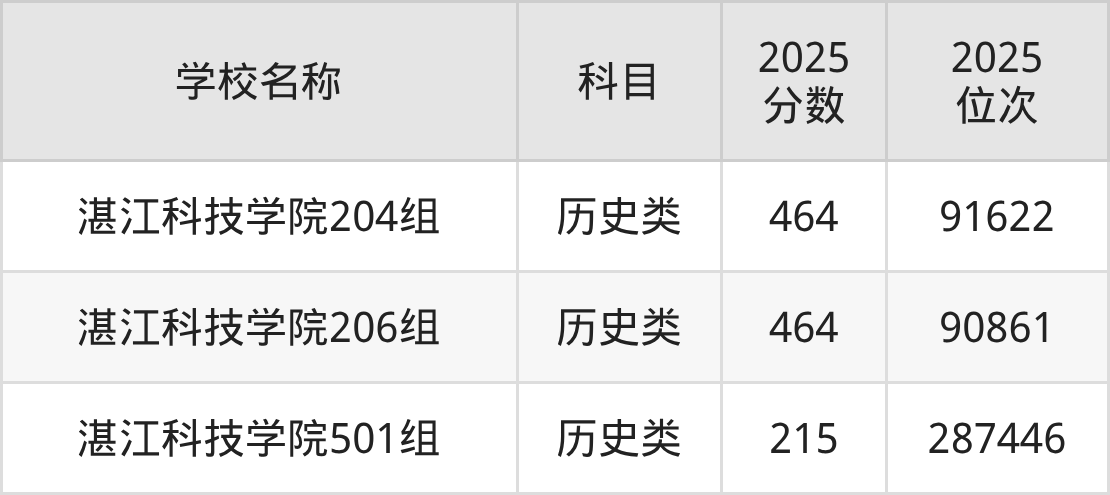 下文为2025年湛江市民办二本大学在广东历史类录取分数线和位次排名表,供大家参考: