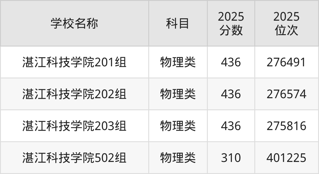 下文为2025年湛江市民办二本大学在广东物理类录取分数线和位次排名表,供大家参考: