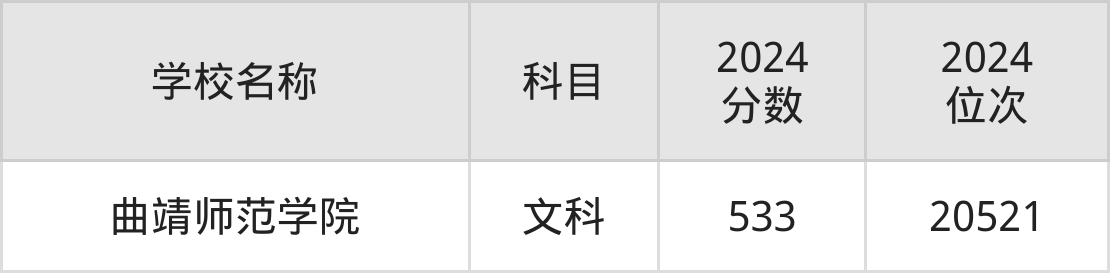 根据2024年曲靖一本大学在云南省文科招生录取分数线来看,曲靖文科收分最低的一本大学为曲靖师范学院,录取分数线为533分。