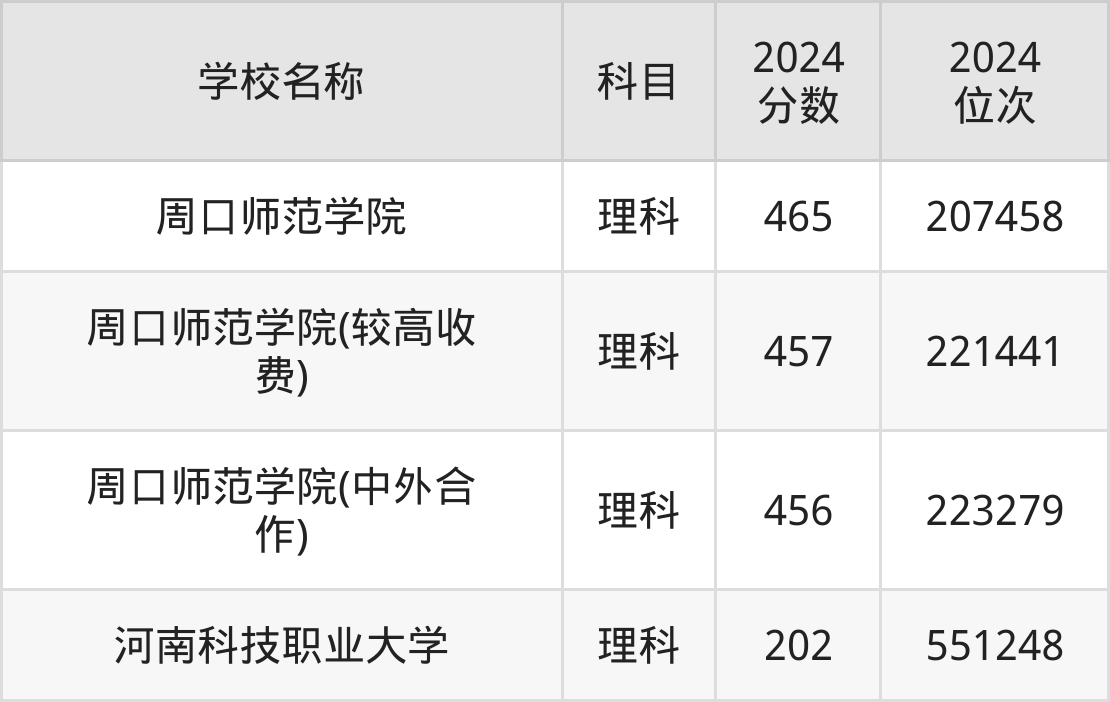 下文为2024年周口市本科大学在河南理科录取分数线和位次排名表,供大家参考: