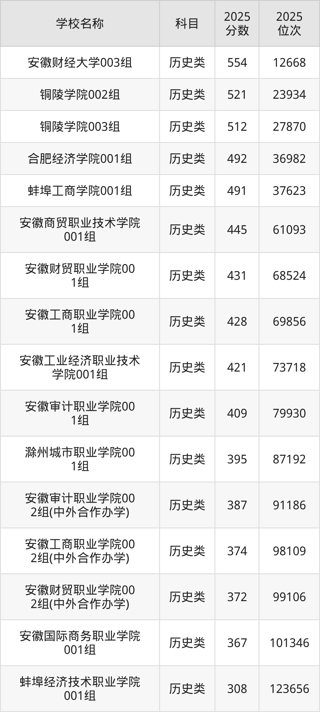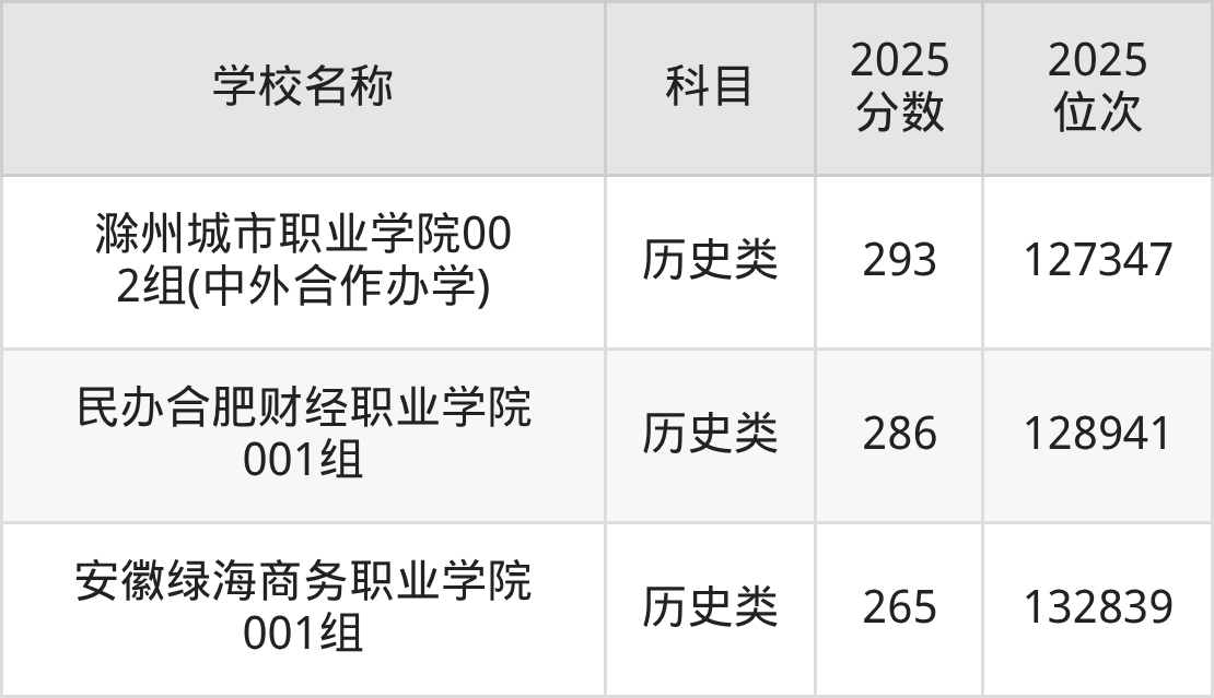 下文为2025年安徽省财经类大学在安徽历史类录取分数线和位次排名表,供大家参考: