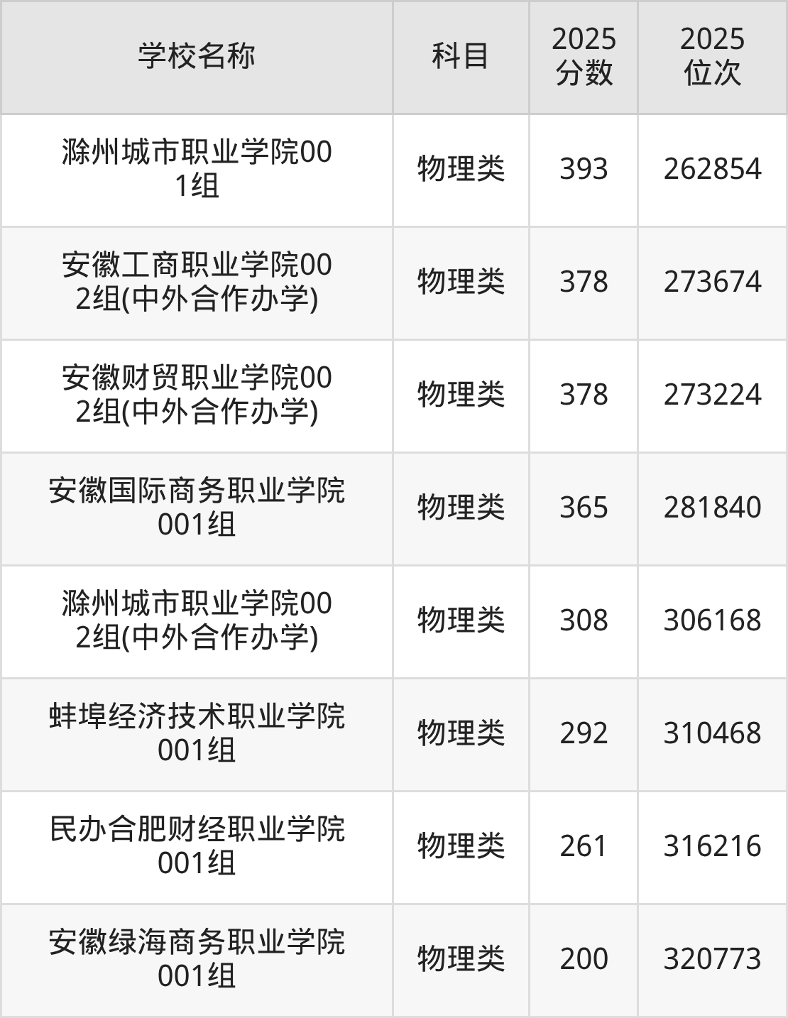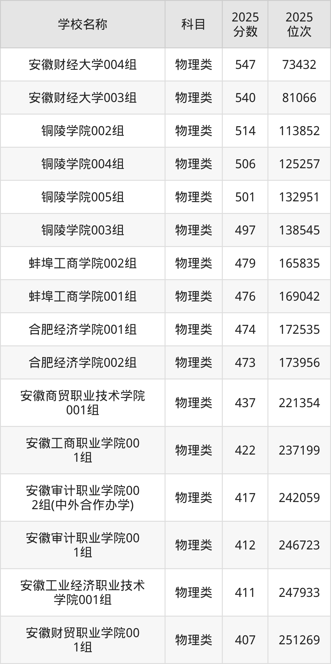 下文为2025年安徽省财经类大学在安徽物理类录取分数线和位次排名表,供大家参考: