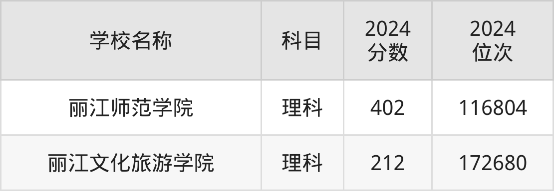 下文为2024年丽江市本科大学在云南理科录取分数线和位次排名表,供大家参考: