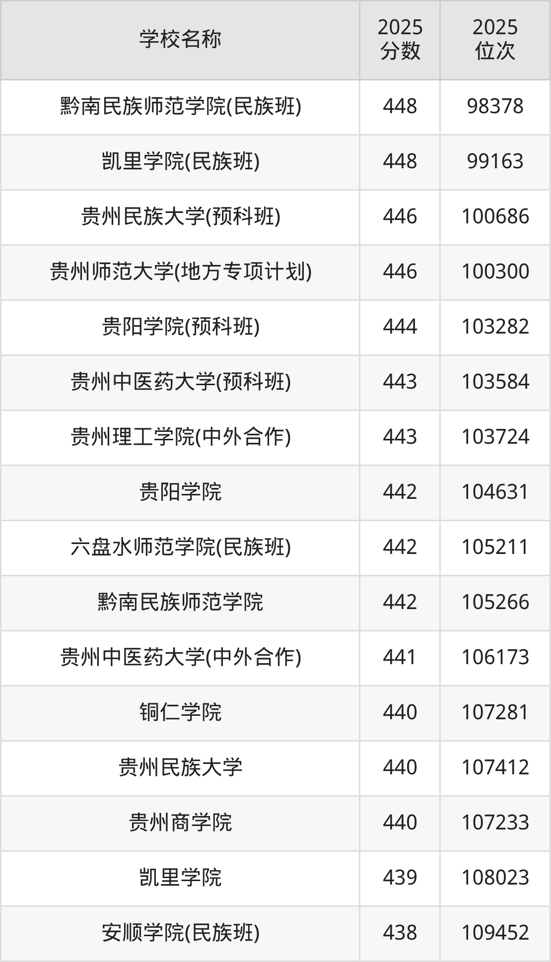 下文为2025年贵州省本科大学在贵州物理类录取分数线和位次排名表,供大家参考: