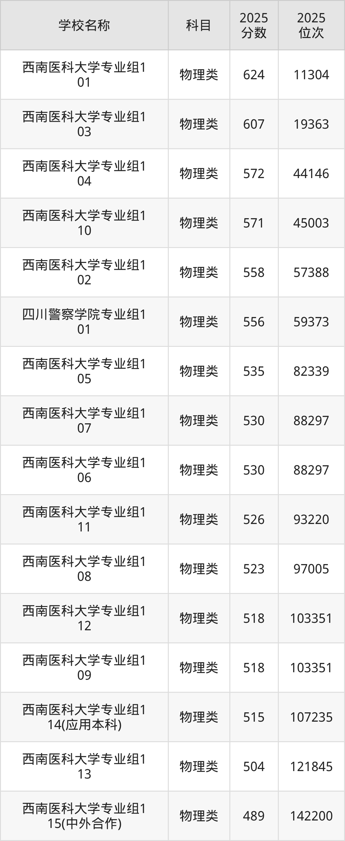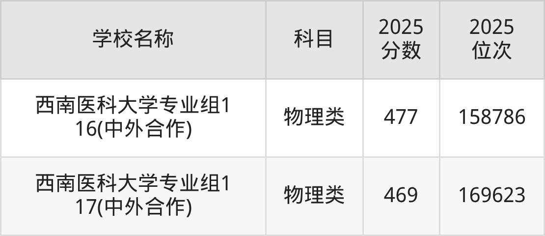 下文为2025年泸州市本科大学在四川物理类录取分数线和位次排名表,供大家参考: