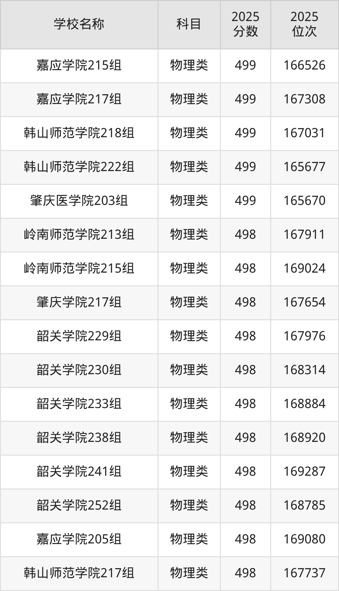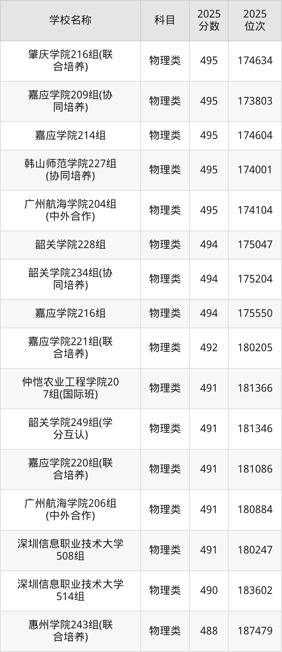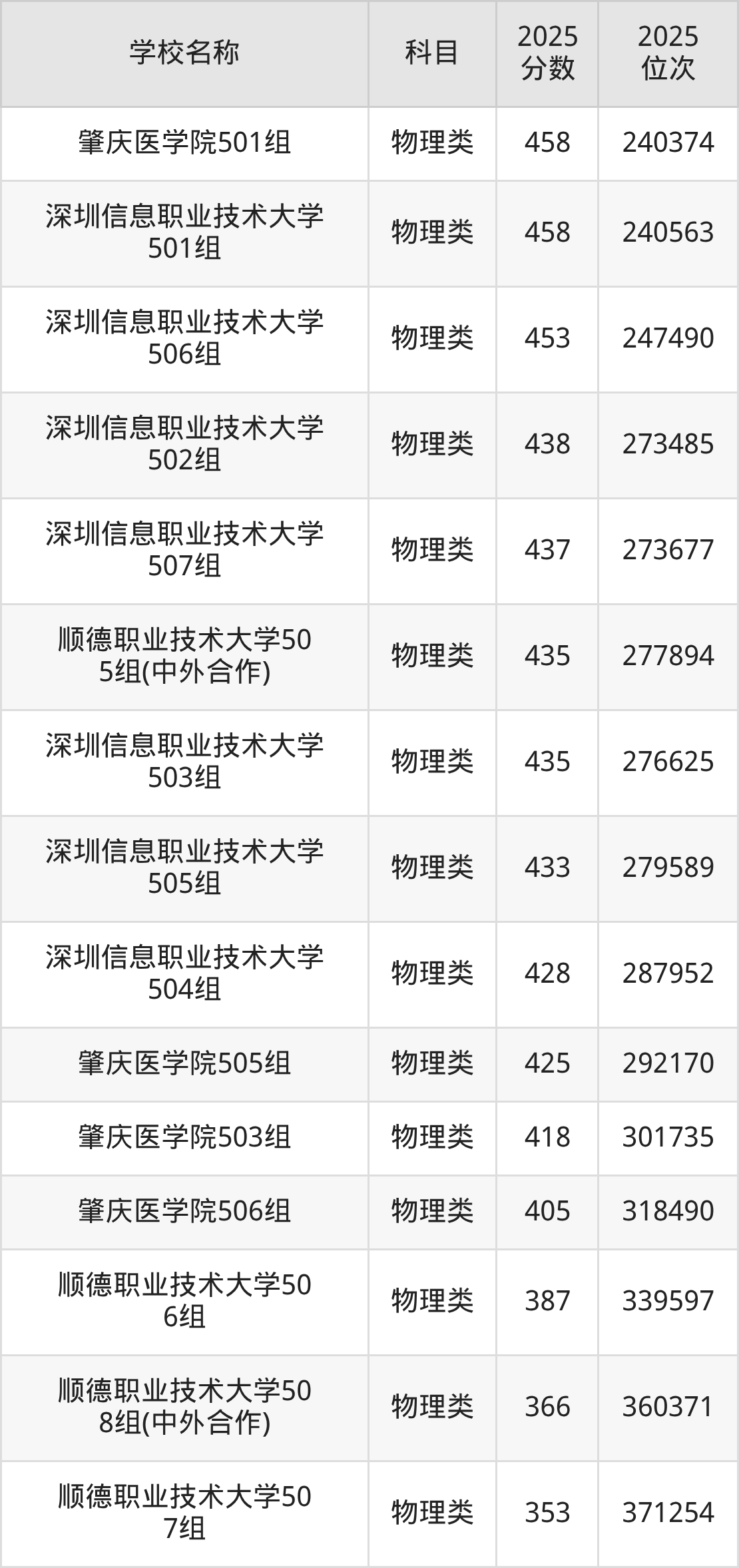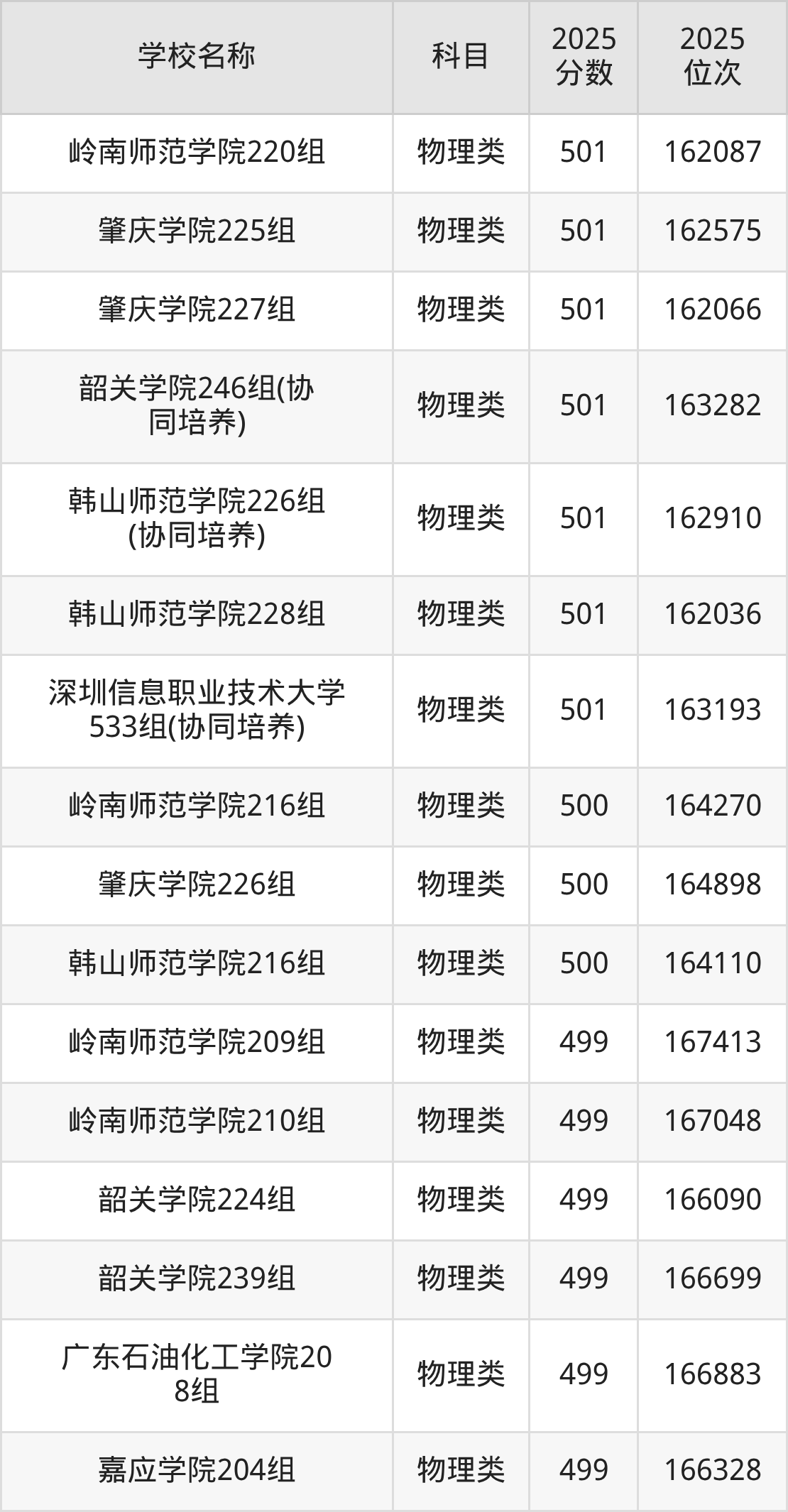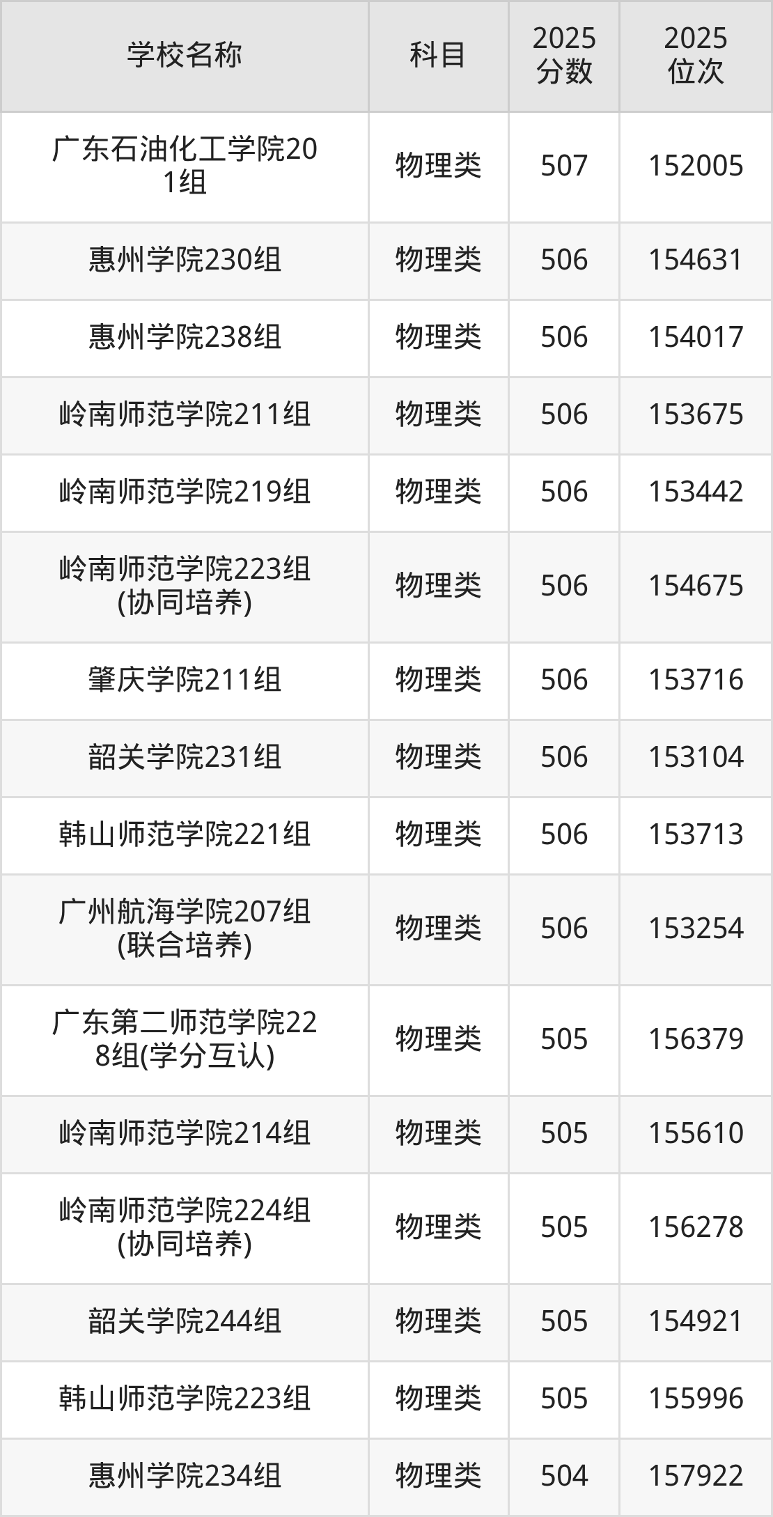 下文为2025年广东省公办二本大学在广东物理类录取分数线和位次排名表,供大家参考: