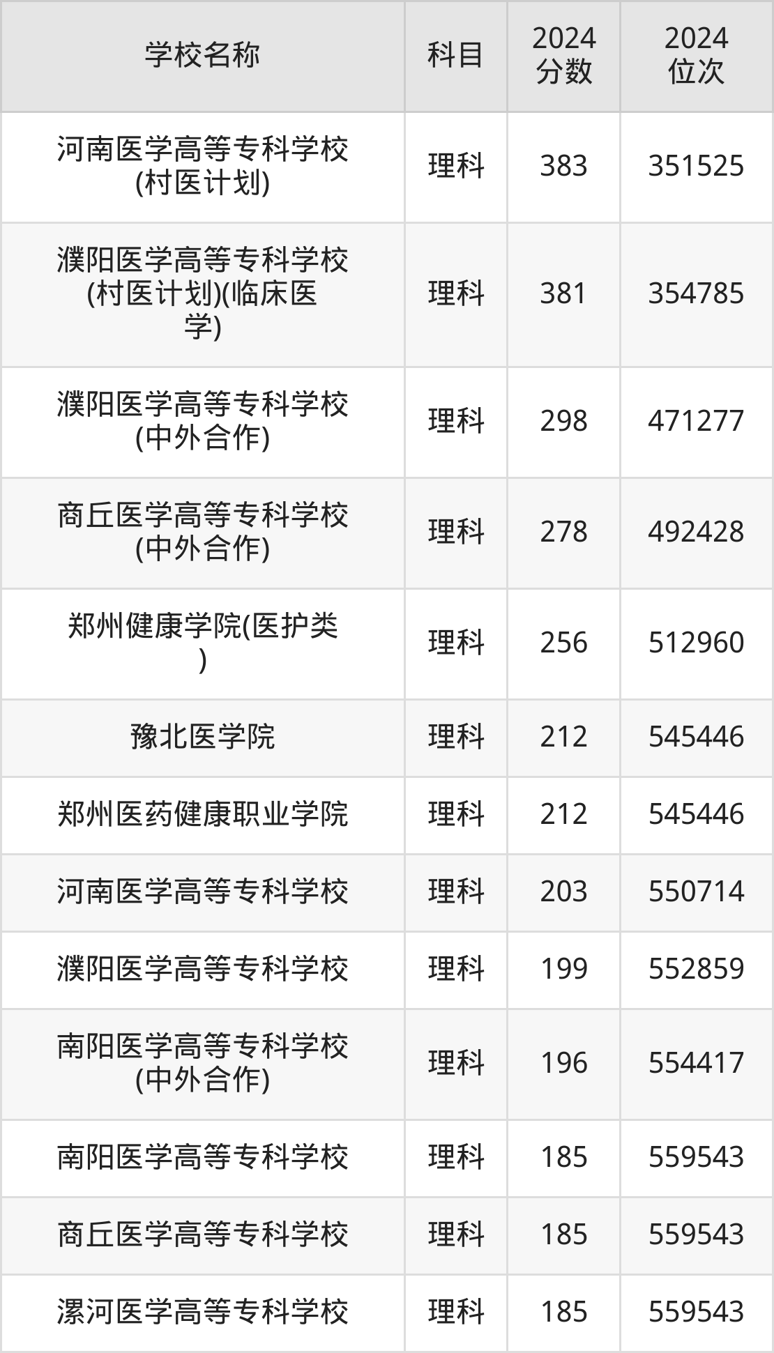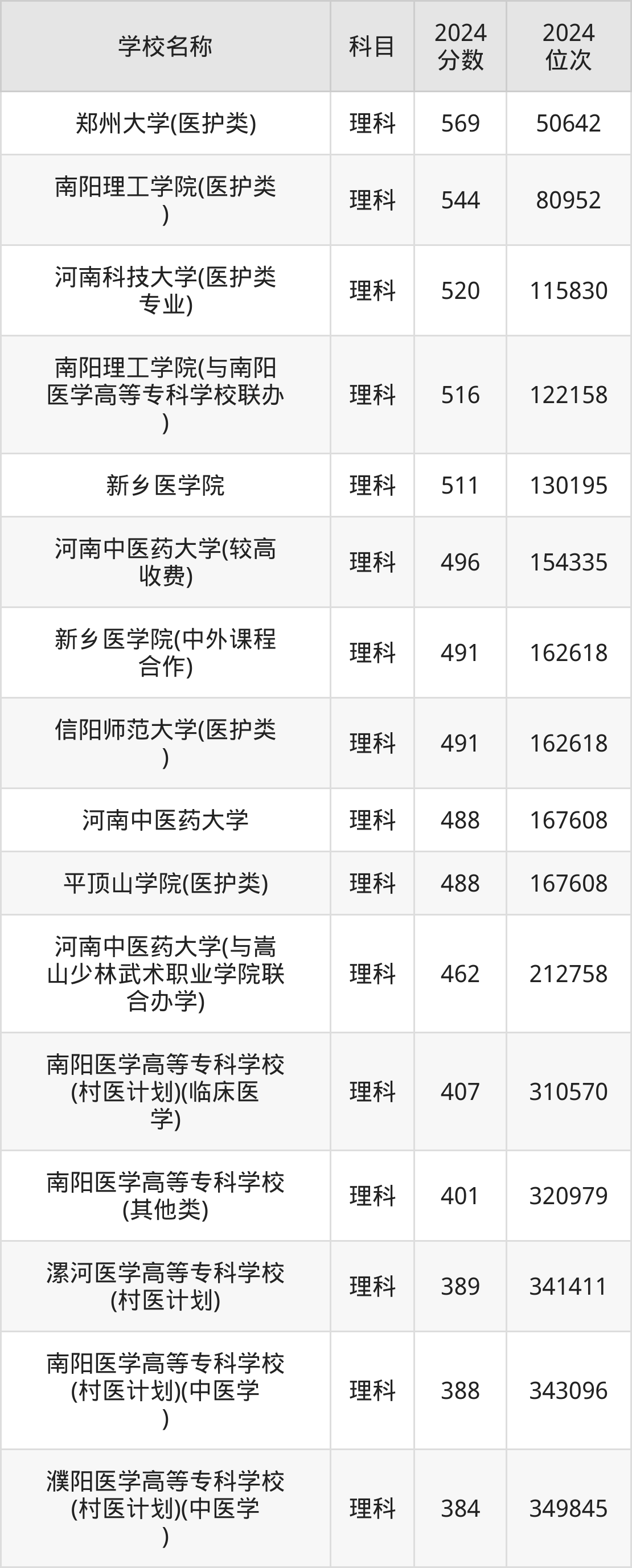 下文为2024年河南省医科大学在河南理科录取分数线和位次排名表,供大家参考: