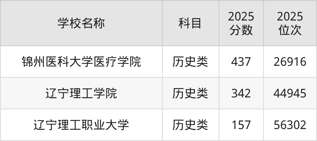 下文为2025年锦州市民办二本大学在辽宁历史类录取分数线和位次排名表,供大家参考: