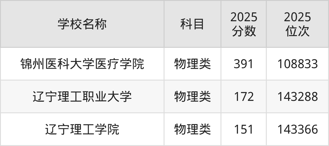 下文为2025年锦州市民办二本大学在辽宁物理类录取分数线和位次排名表,供大家参考: