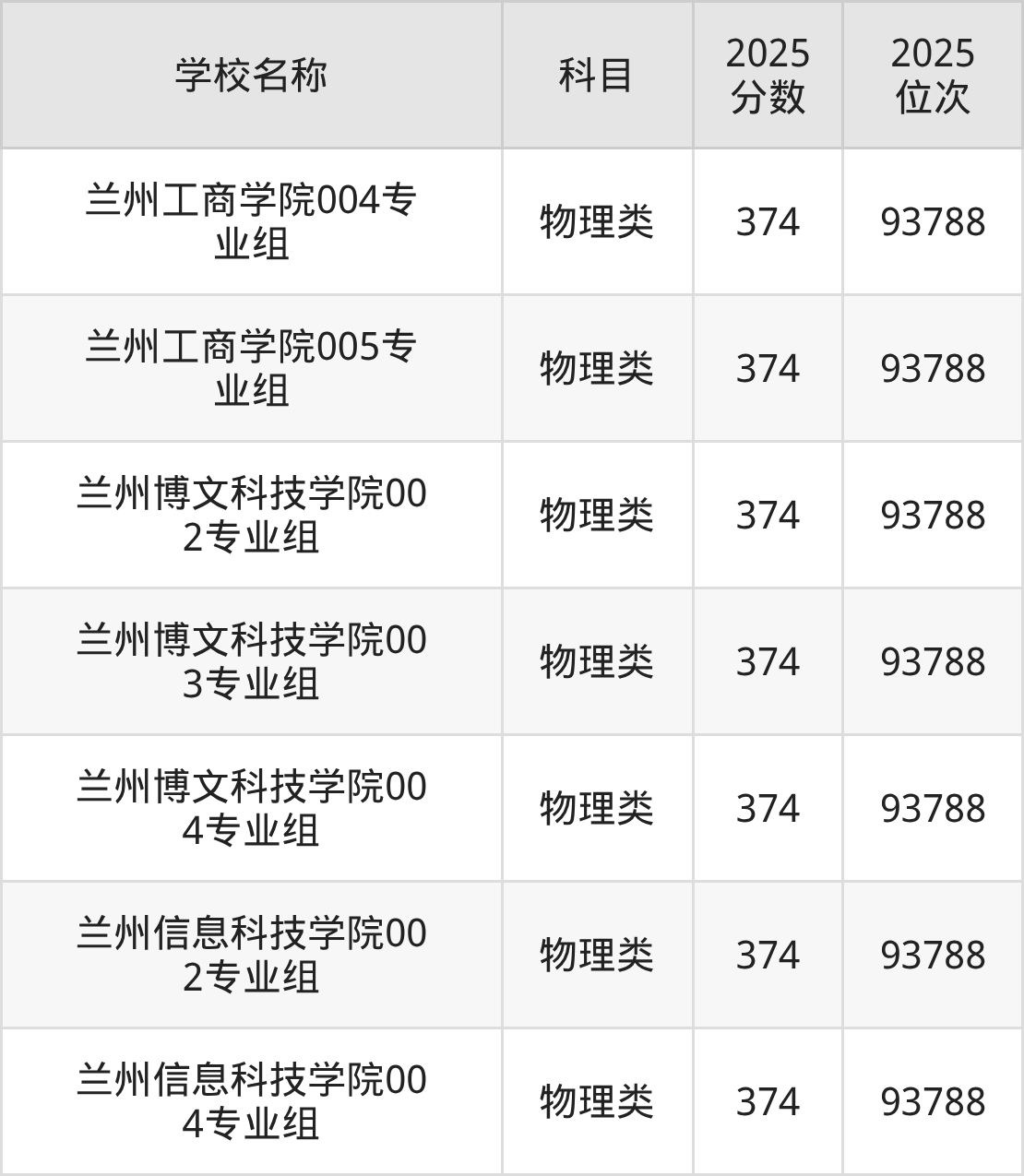 下文为2025年兰州市民办二本大学在甘肃物理类录取分数线和位次排名表,供大家参考: