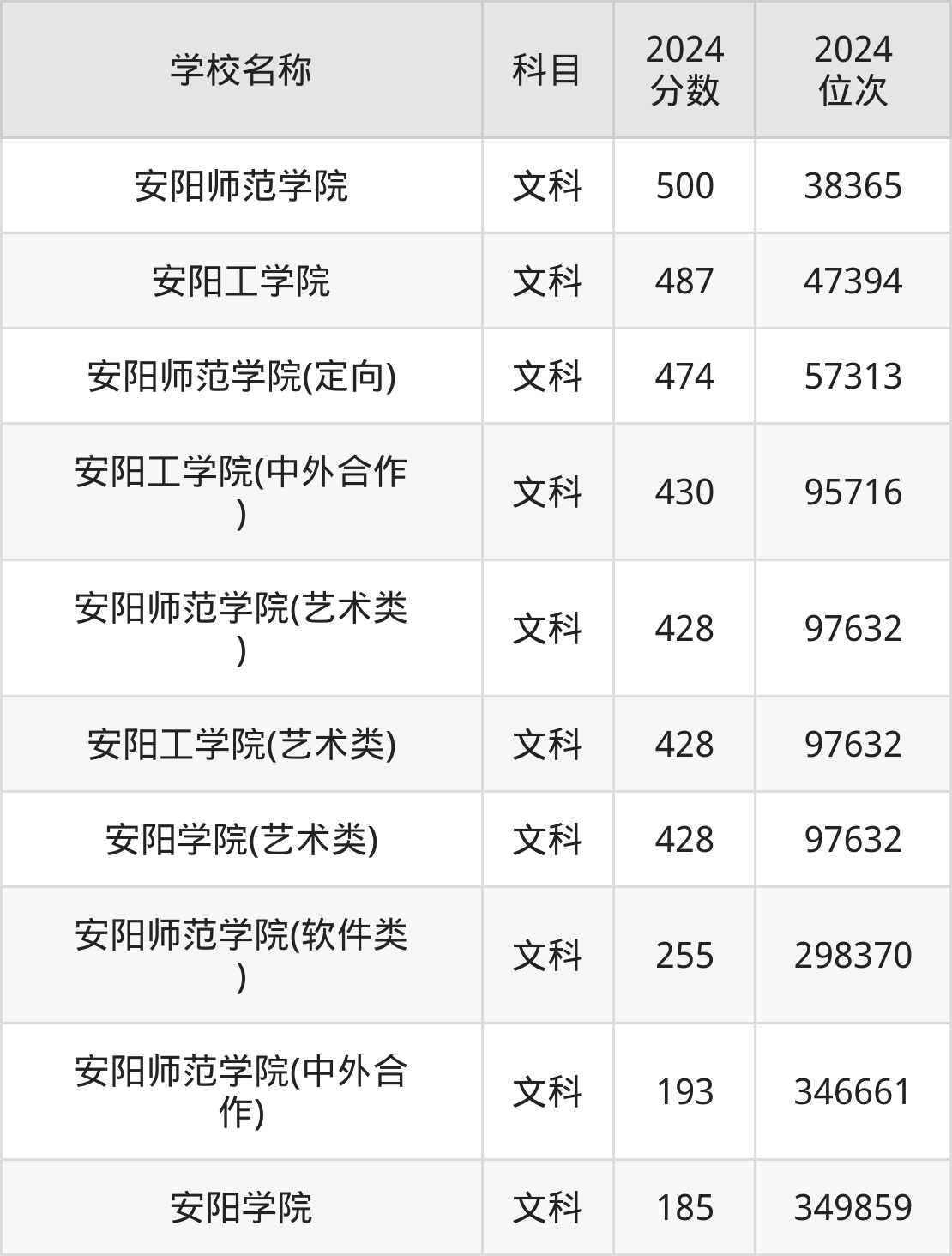 下文为2024年安阳市本科大学在河南文科录取分数线和位次排名表,供大家参考: