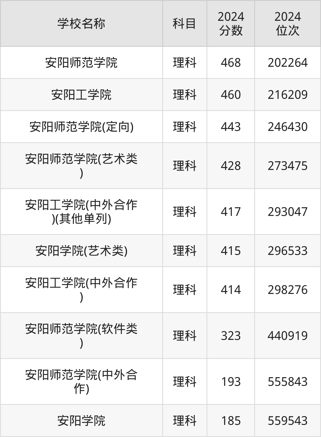 下文为2024年安阳市本科大学在河南理科录取分数线和位次排名表,供大家参考:
