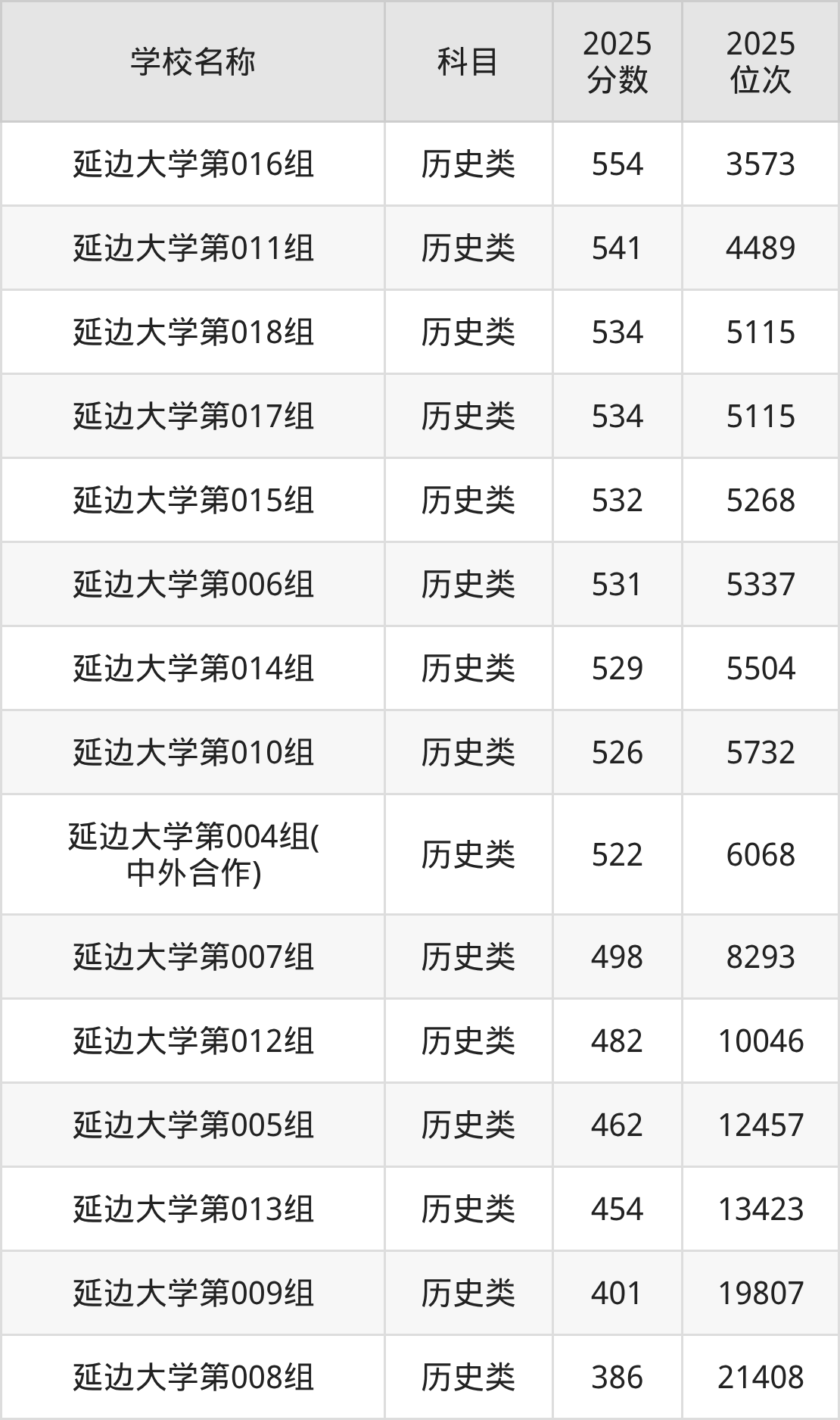 下文为2025年延边朝鲜族自治州含保研资格的大学在吉林历史类录取分数线和位次排名表,供大家参考: