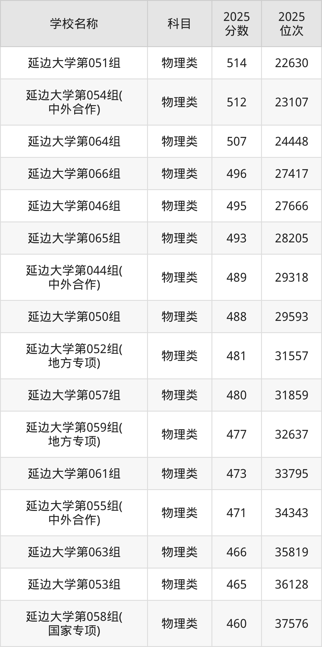 下文为2025年延边朝鲜族自治州含保研资格的大学在吉林物理类录取分数线和位次排名表,供大家参考: