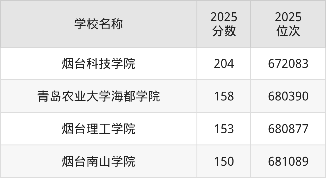 下文为2025年烟台市民办二本大学在山东录取分数线和位次排名表,供大家参考: