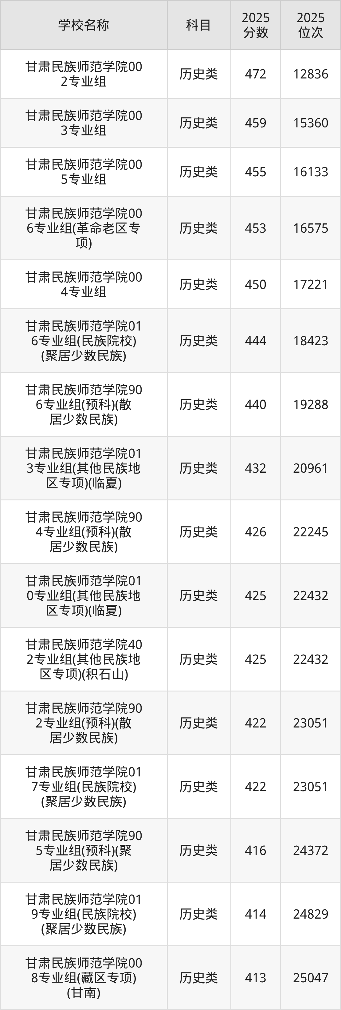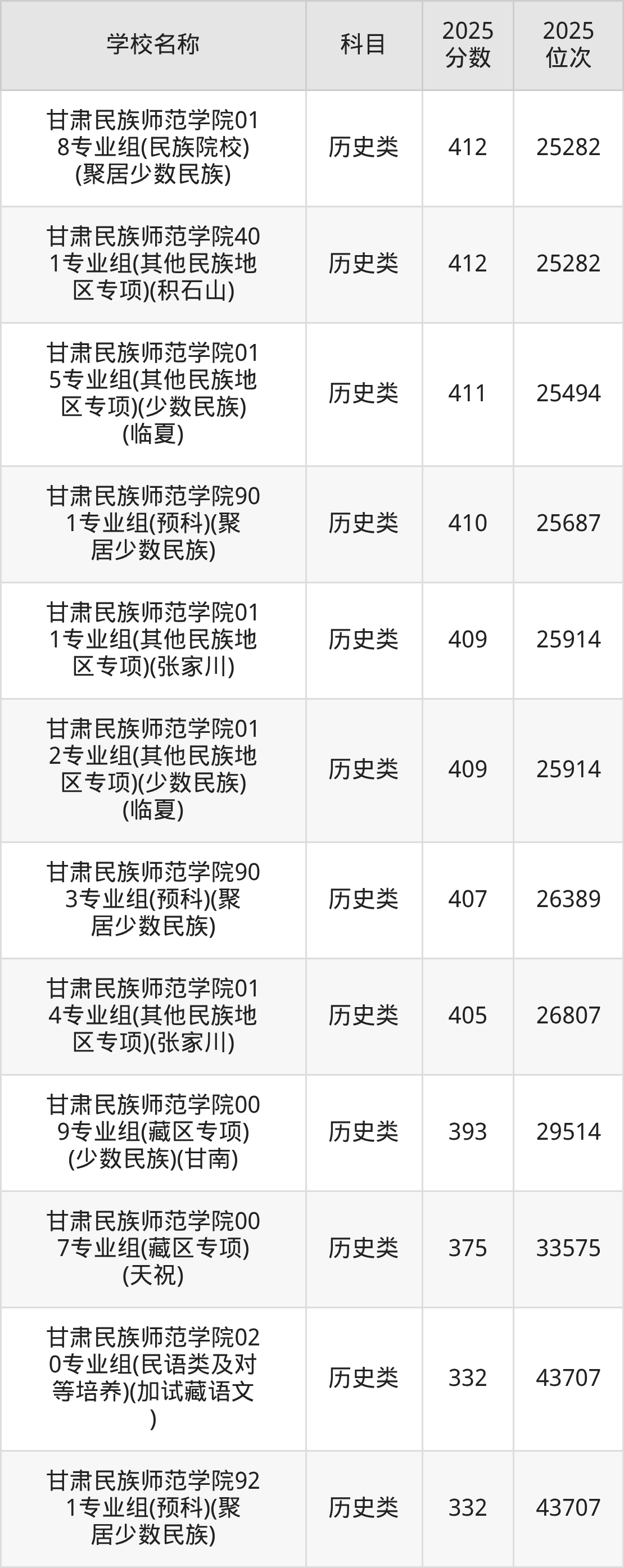 下文为2025年甘南藏族自治州本科大学在甘肃历史类录取分数线和位次排名表,供大家参考:
