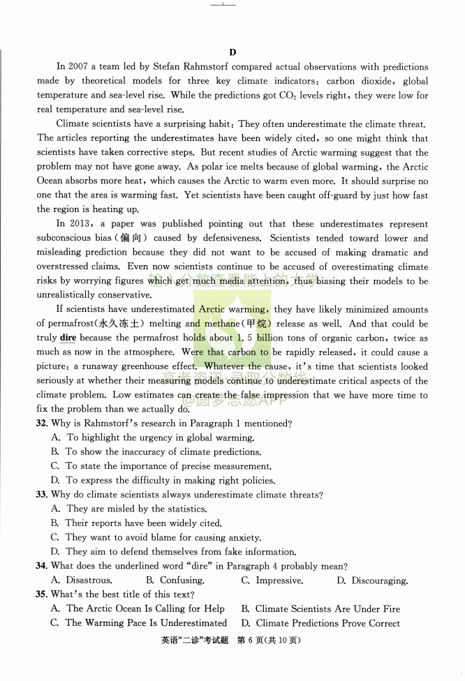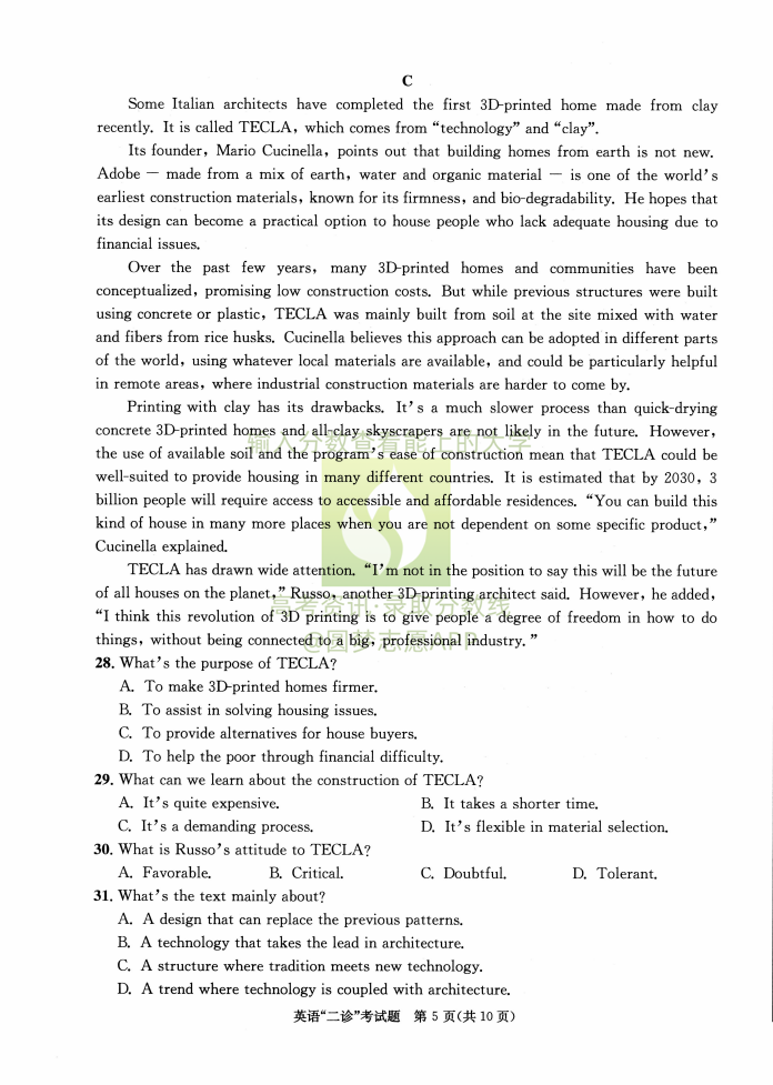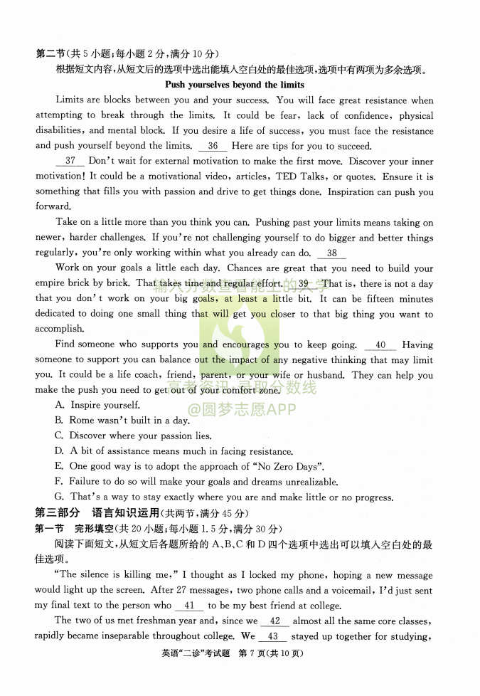 二、2023成都二诊英语答案解析