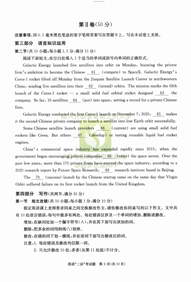 一、2023成都二诊英语试卷