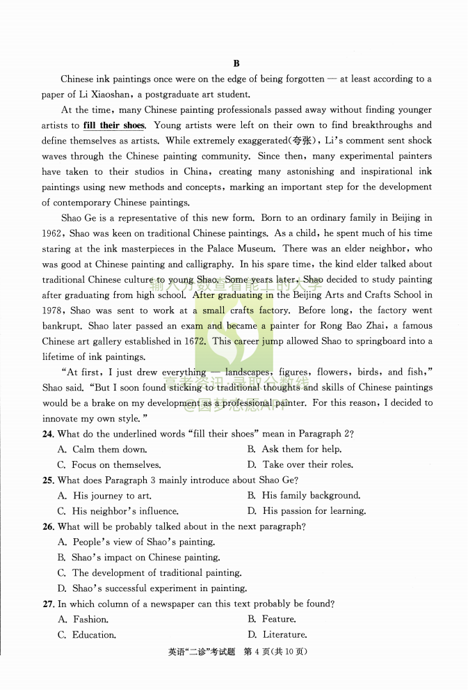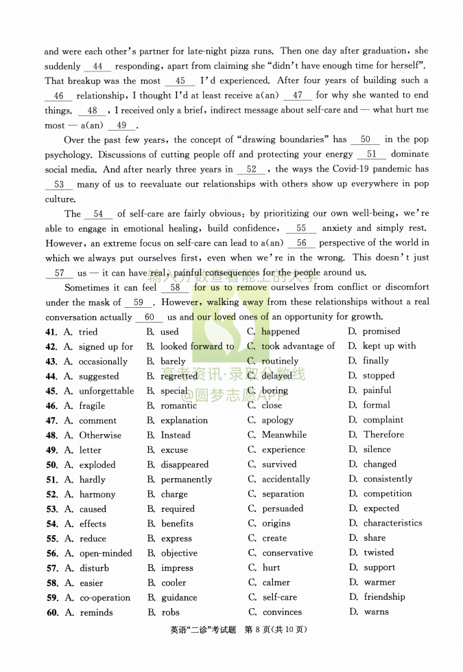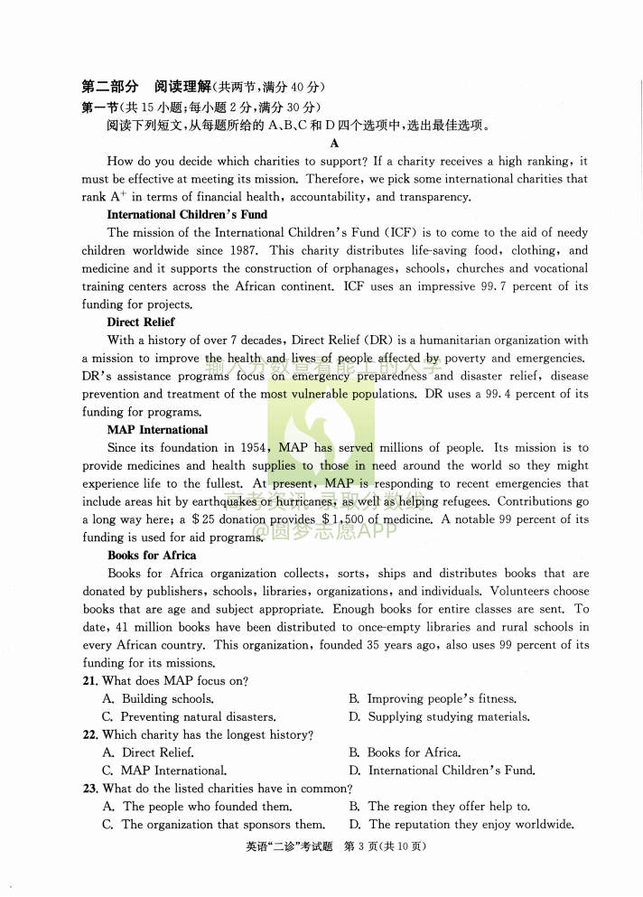 2023成都二诊考试将于2023年3月20日开考,考试结束后本文将更新成都市2023届高三第二次诊断性考试英语答案及试卷,下文为小编搜集整理的2023成都二诊英语试题及参考答案,供大家参考。