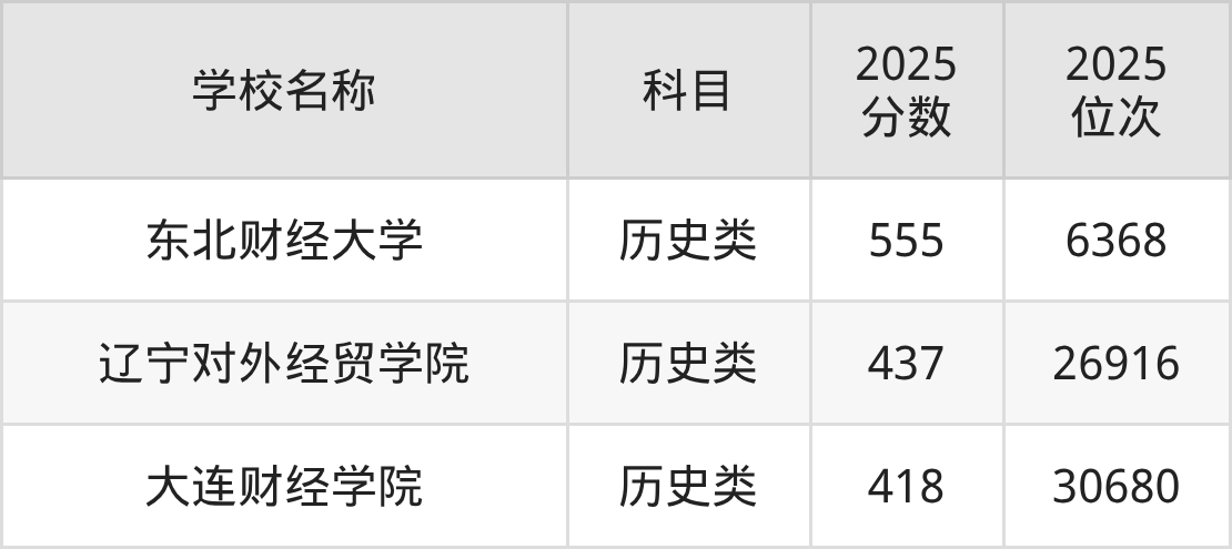 下文为2025年大连市财经类大学在辽宁历史类录取分数线和位次排名表,供大家参考: